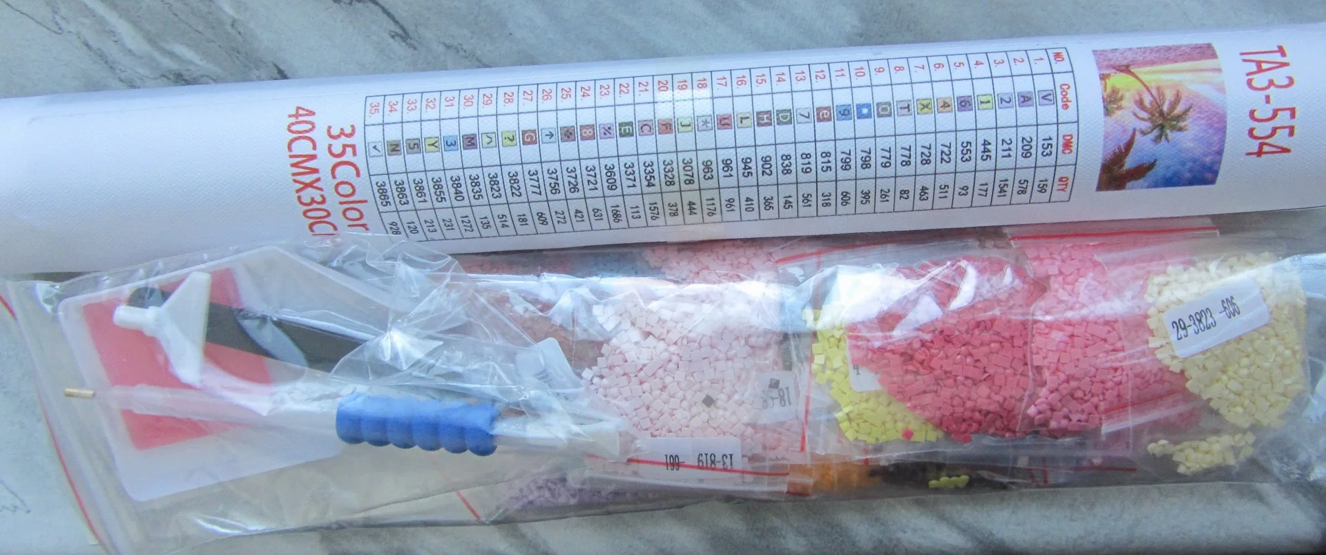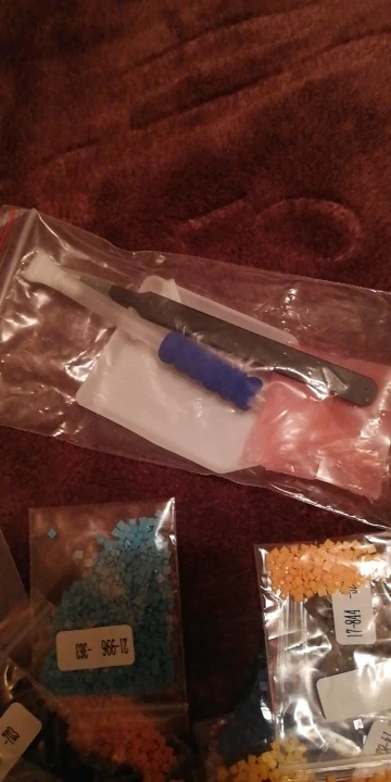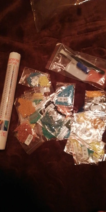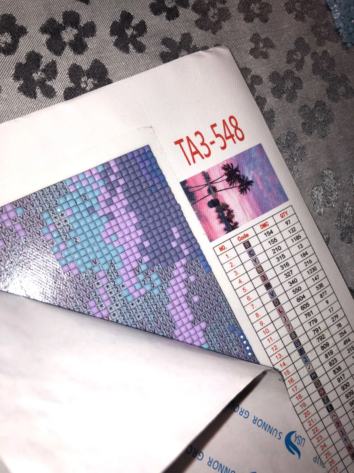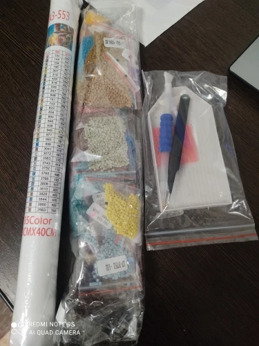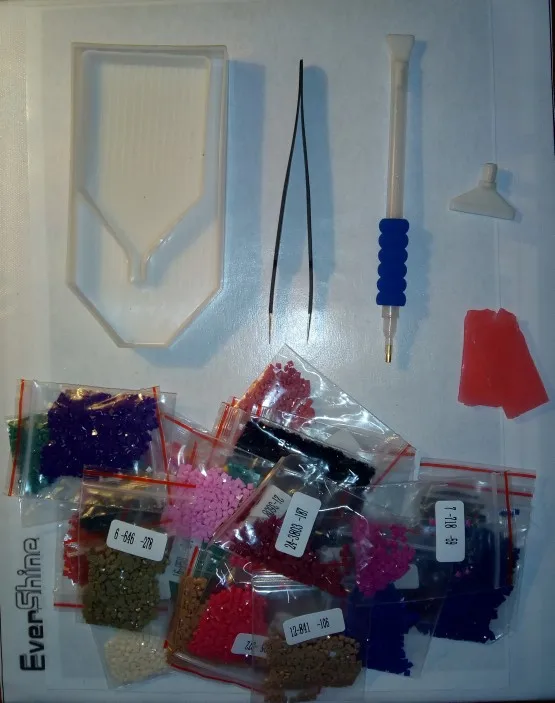 За эту цену (286 руб) это хороший набор! В комплекте есть всё для работы: два лотка для страз, пинцет, стилус + две насадки для него, силикон, пакетики со стразами всех нужных цветов (30 штук) и, конечно же, само полотно, закрытое пленкой (чтобы клей на полотне не высох). На полотне заранее есть схема мозаики, на которую нужно клеить стразы. Также на полотне написаны коды цветов, чтобы было легче определить какой цвет использовать. Но есть пара моментов: 1. В некоторых пакетиках есть стразы других цветов. Даже не знаю, возможно, они должны были быть в пакетиках своего цвета. У меня есть подозрение, что это стразы, которые попали туда случайно за место цвета, который должен быть в пакетике, и возможно, страз нужного цвета может не хватить. Но посмотрим, как будет на деле. Может это и правда стразы из других пакетиков. 2. Третья цифра в коде цвета не правильно напечатана у всех пакетиков. Но, возможно, это так и нужно. Доставка быстрая— 14 дней!