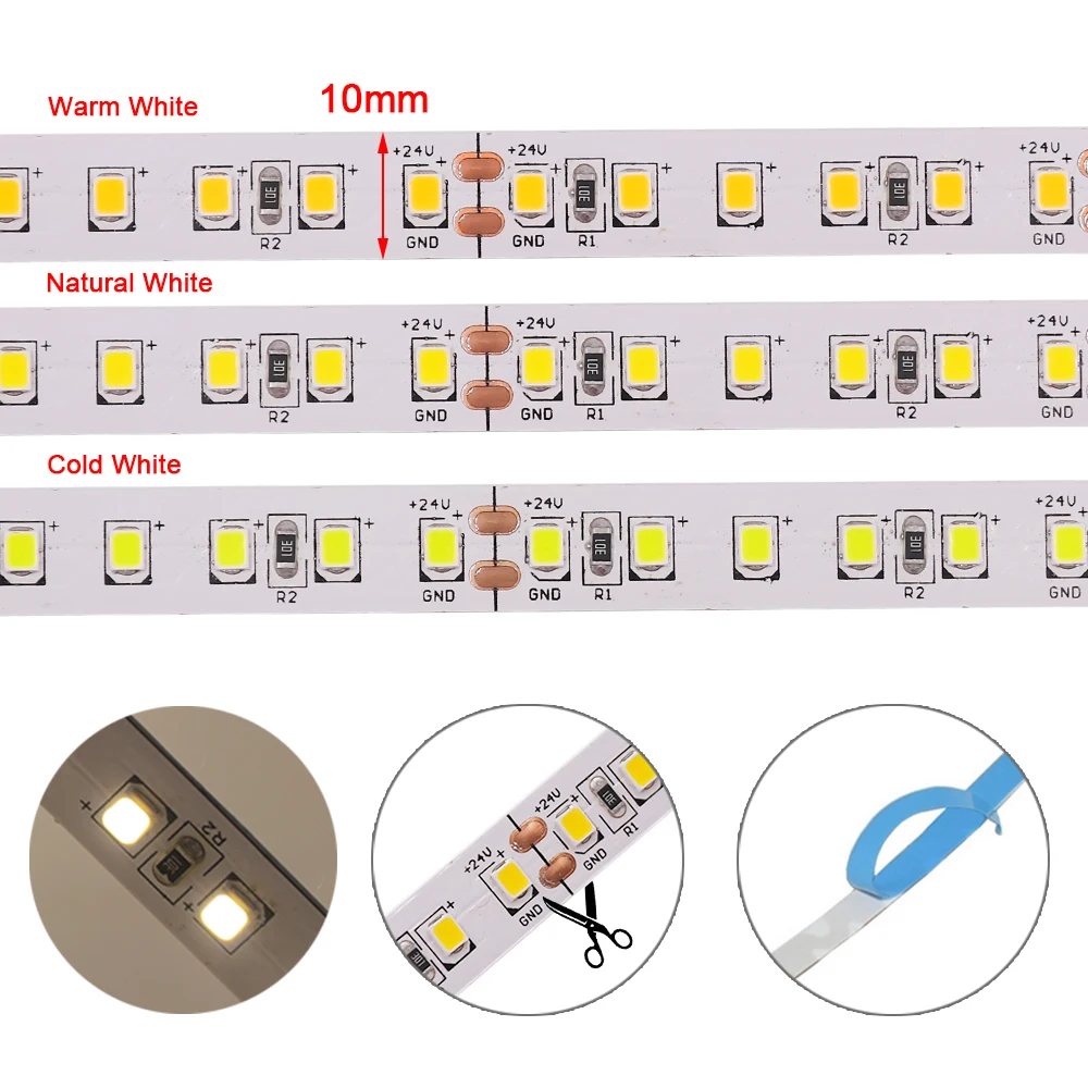 Светодиодная лента высокой яркости 5 м, 2835 24 В постоянного тока, 10 м, 15 м, 20 м, Светодиодная лента, лента, 120 светодиодов/м, украшение для спальни, дома, натуральный белый цвет