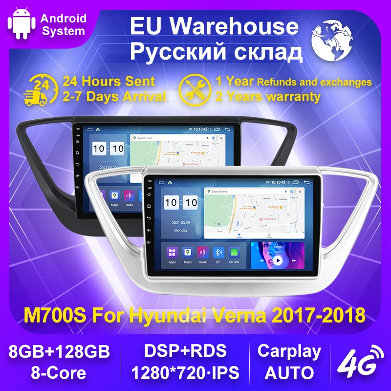 Автомагнитола MEKEDE, мультимедийный проигрыватель 2DIN с IPS-экраном для Hyundai Verna Solaris, carplay, GPS, 8 ядер, 4 Гб + 64 ГБ, 4G LTE