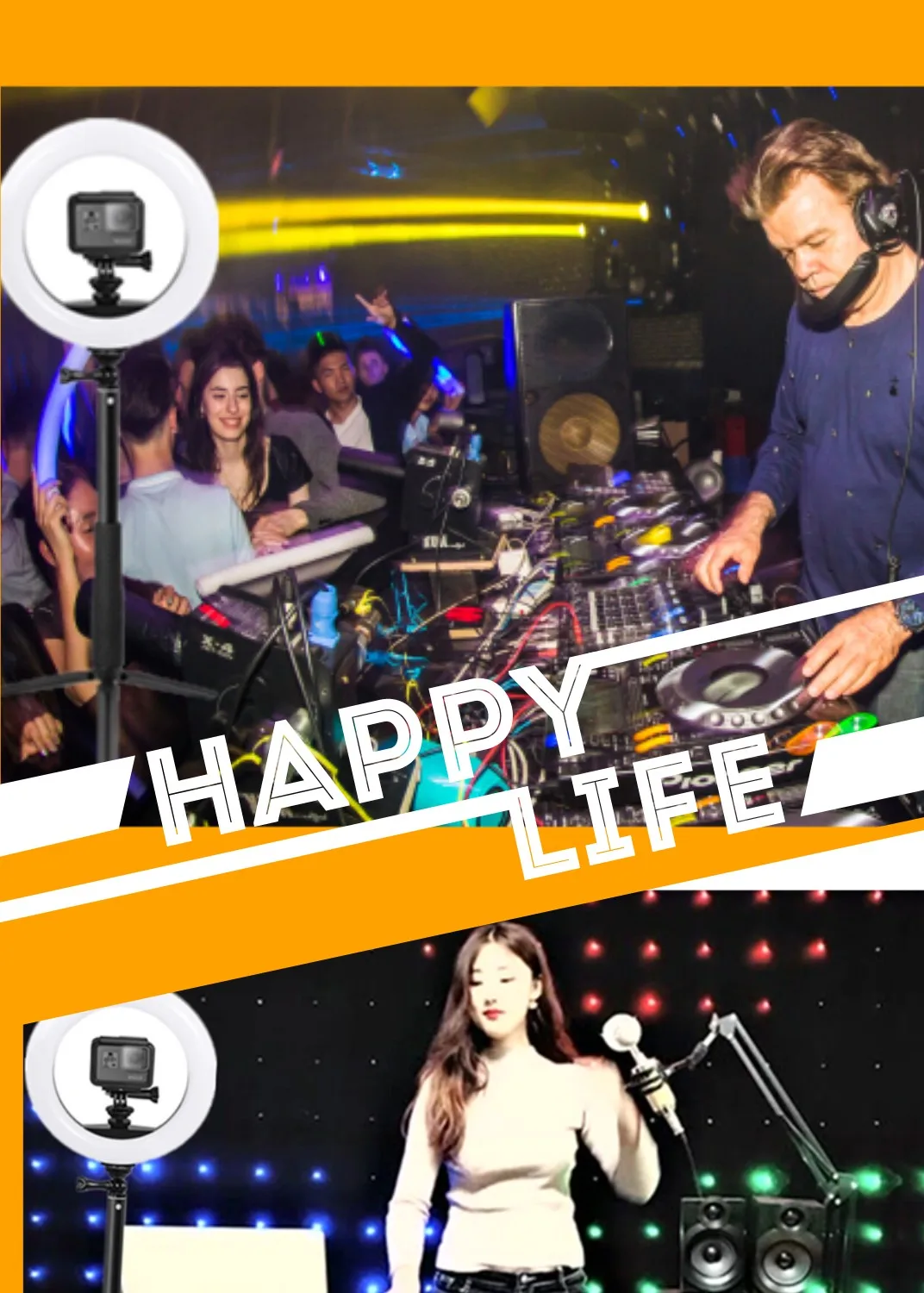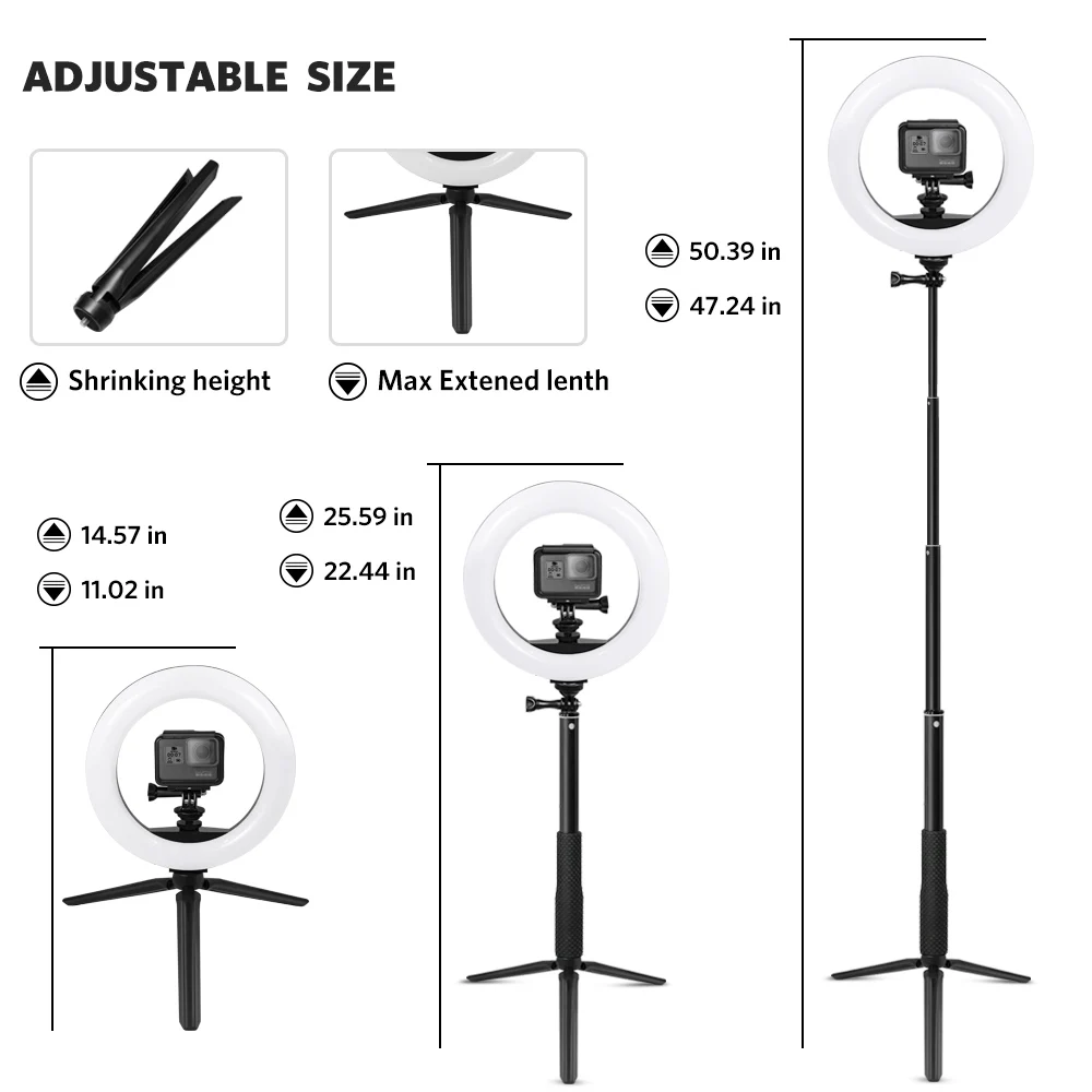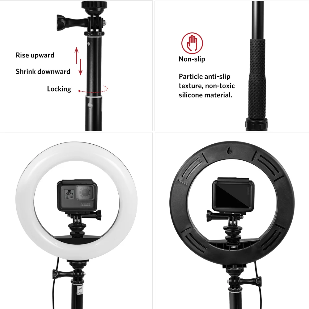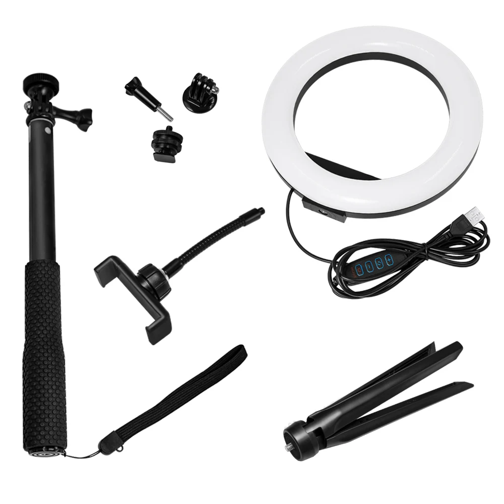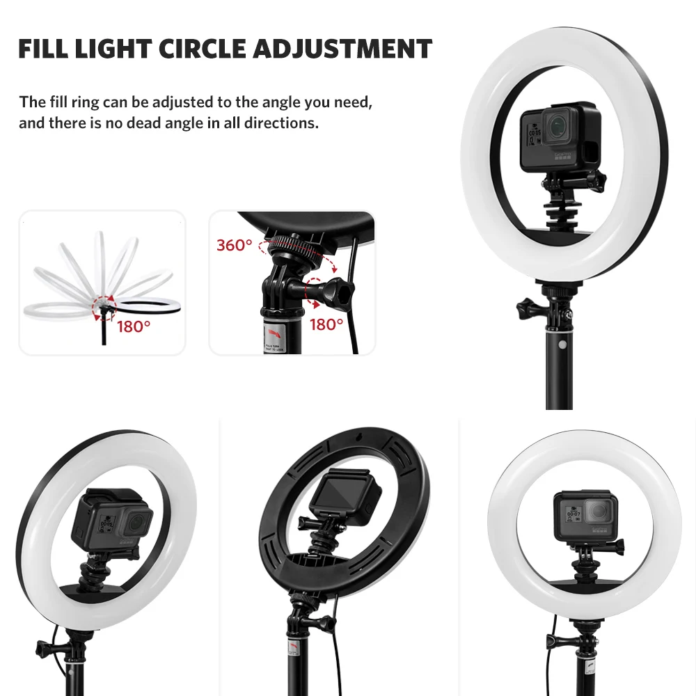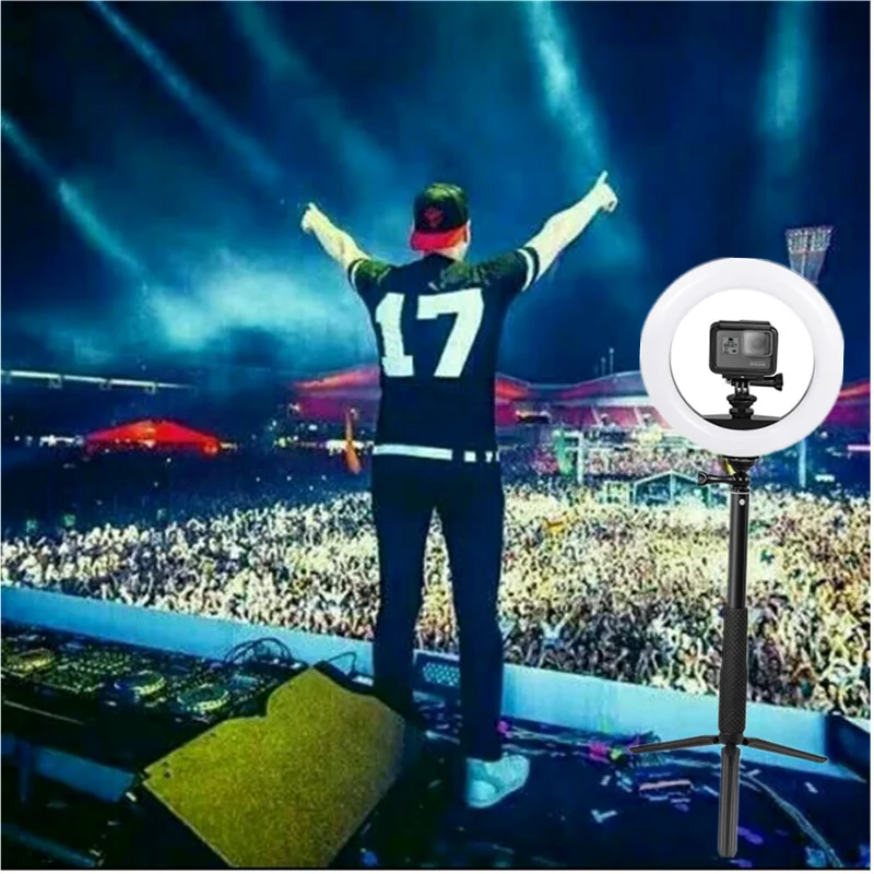 Светодиодное кольцо для селфи, с регулируемой яркостью, для Gopro Hero 8, 7, 6, 5, 4, XiaomiYi sj, ENEK, для бара, диджея