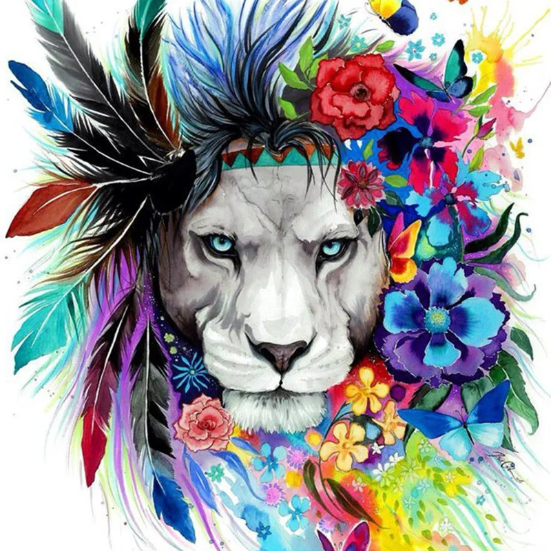 GATYZTORY 5D алмазная картина, полностью квадратная мозаика, настенная наклейка, DIY Алмазная вышивка, домашний декор, пользовательские фотографии, цветная голова льва