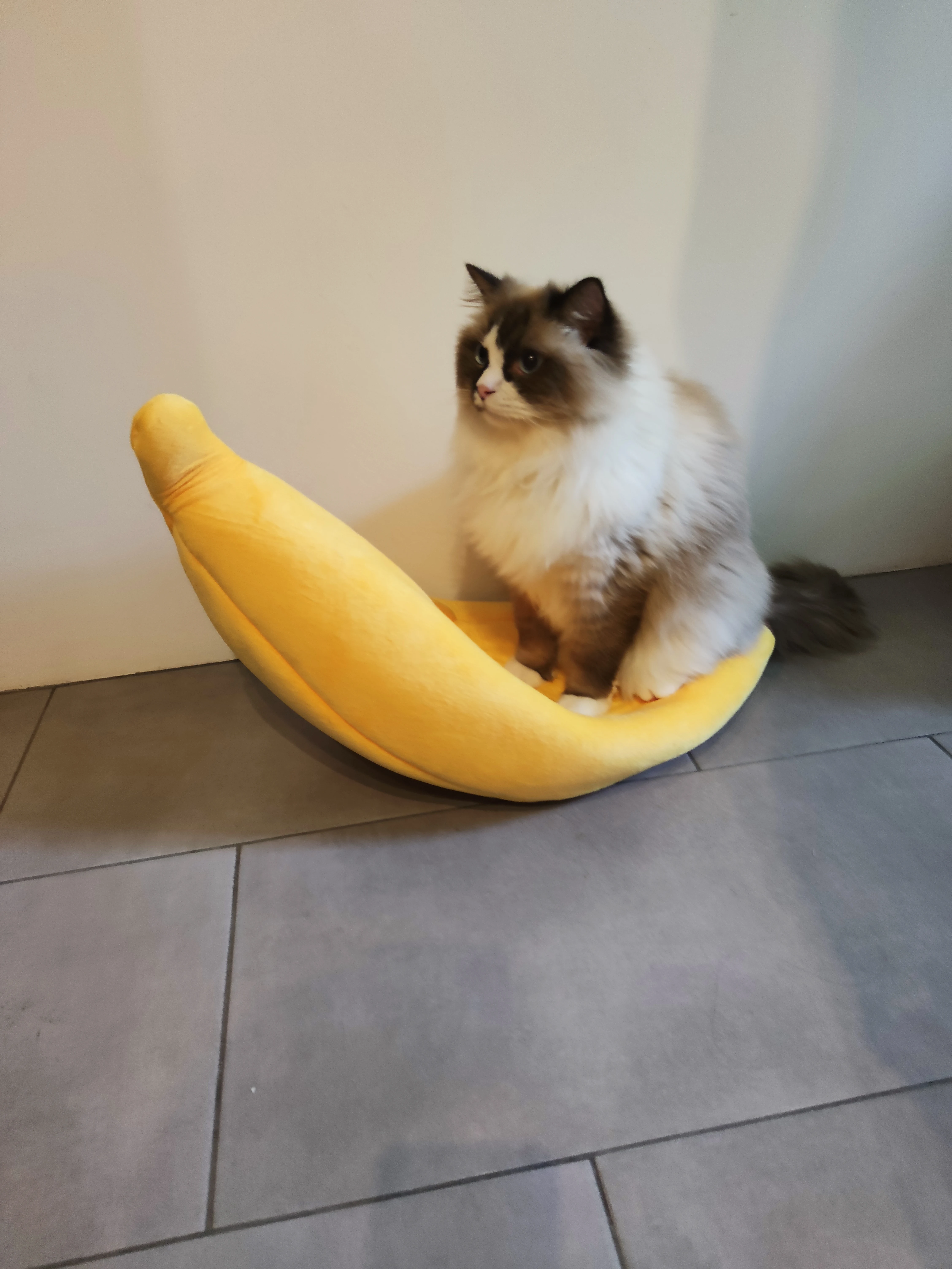 Banana looks just like the picture, very soft and comfortable. Cat hates it for now.