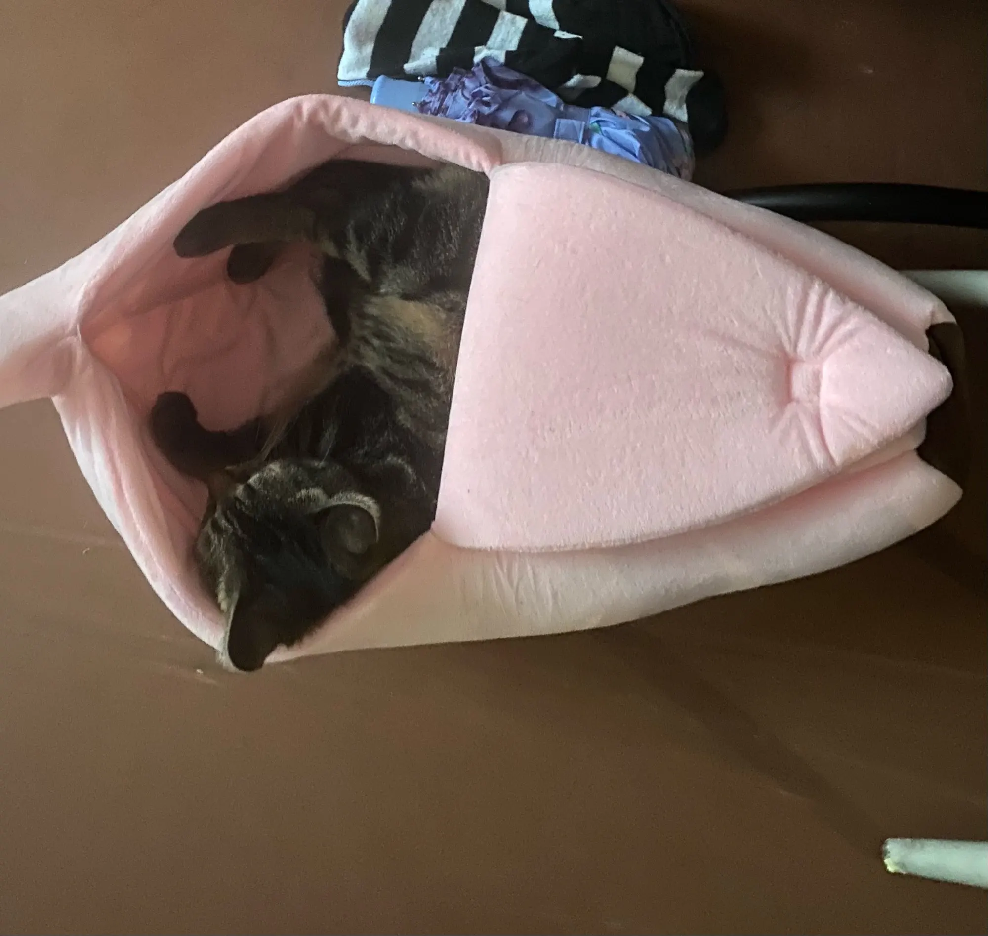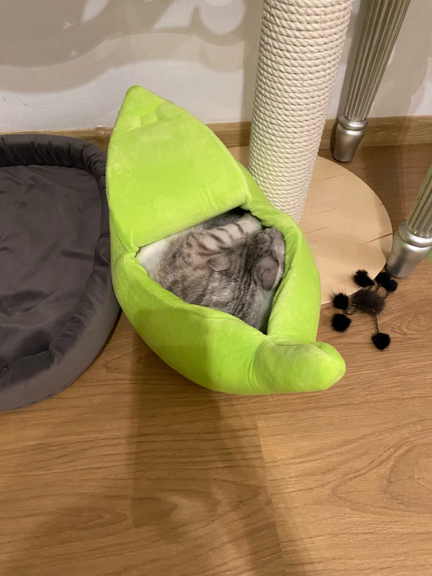 Домик замечательный! Немного помят - это при получении, но это дело поправимое. Моя кошечка познакомилась с ним... но спать пока не стала, потому что у нее сейчас время игр. Рекомендую! Необычный и прикольный!