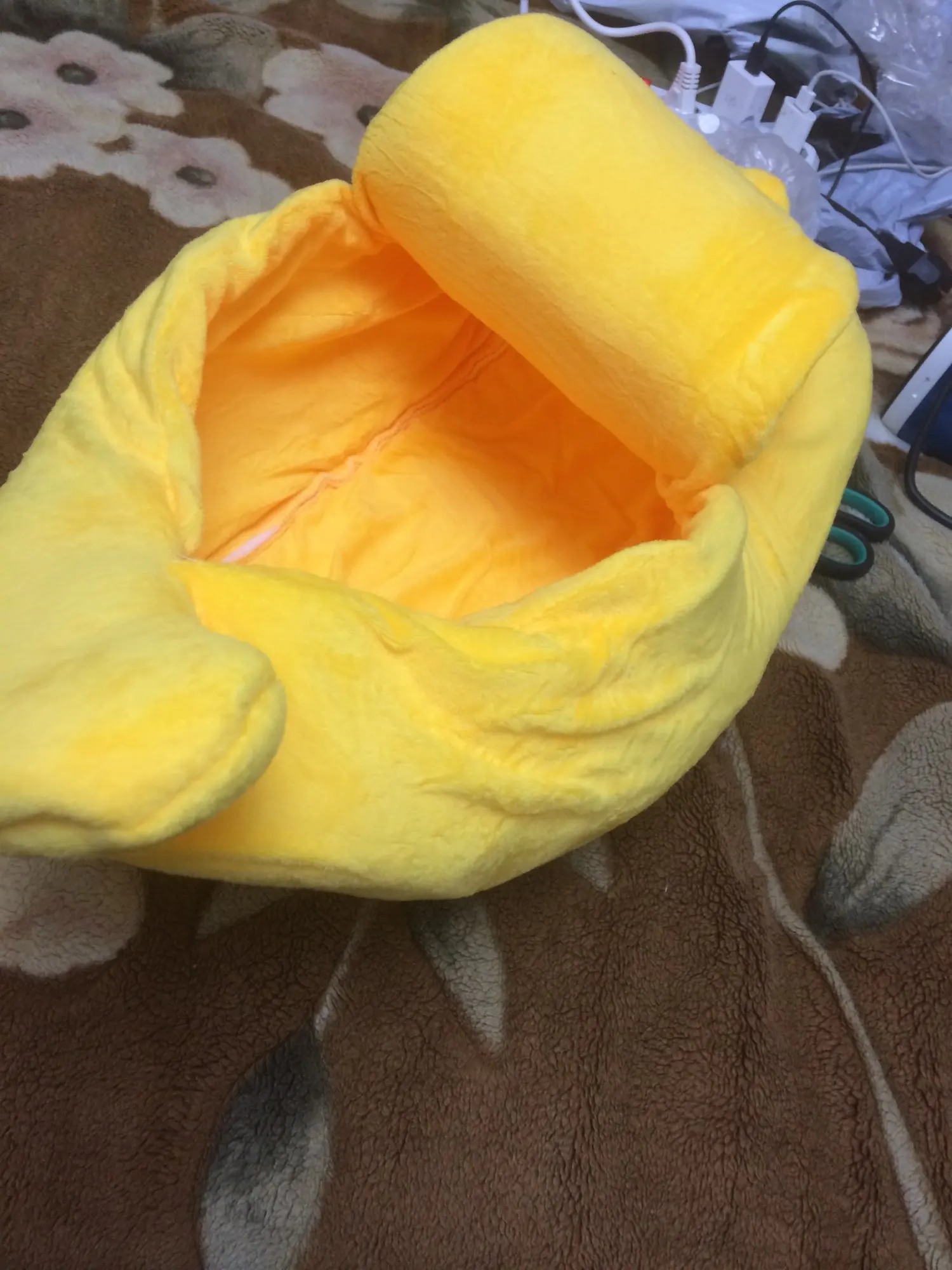 очень мягкий и приятный банан-лежанка. кошка полюбила сразу! калачиком сворачивается и спит. теперь вместо отсека в шкафу спит тут! чему мы рады! спасибо продавцу за такой чудесный подарок для животных! доставка быстрая. продукт без повреждений!