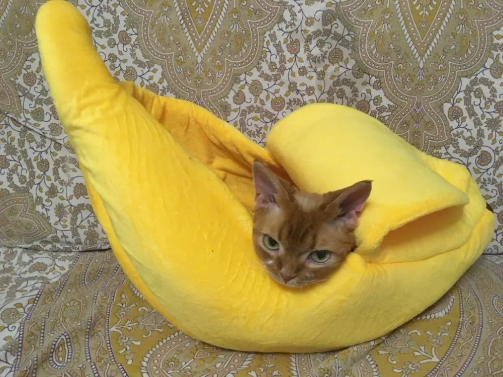 Забавный домик-банан для кошек, милый уютный коврик для кошек, кровати, теплая прочная переносная корзина для питомцев, собачья Подушка, товары для кошек, разноцветные