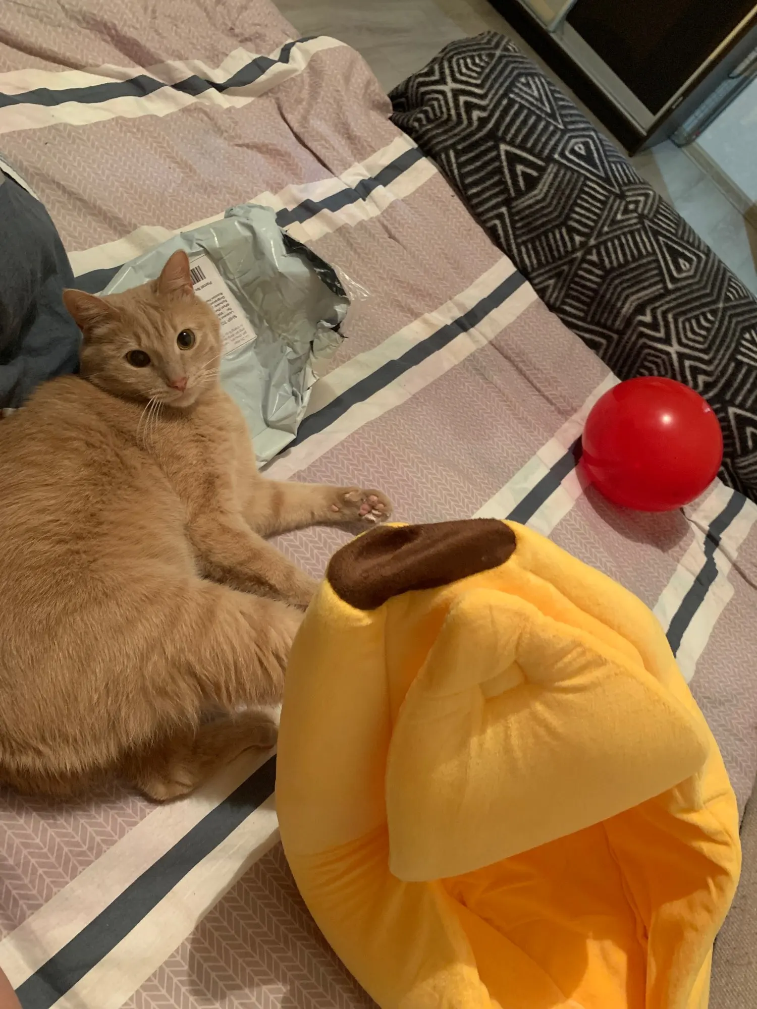 офигенный банан коту понравилось, туда даже 2кота влезет))) и доставка за неделю с небольшим, шикарно))))
