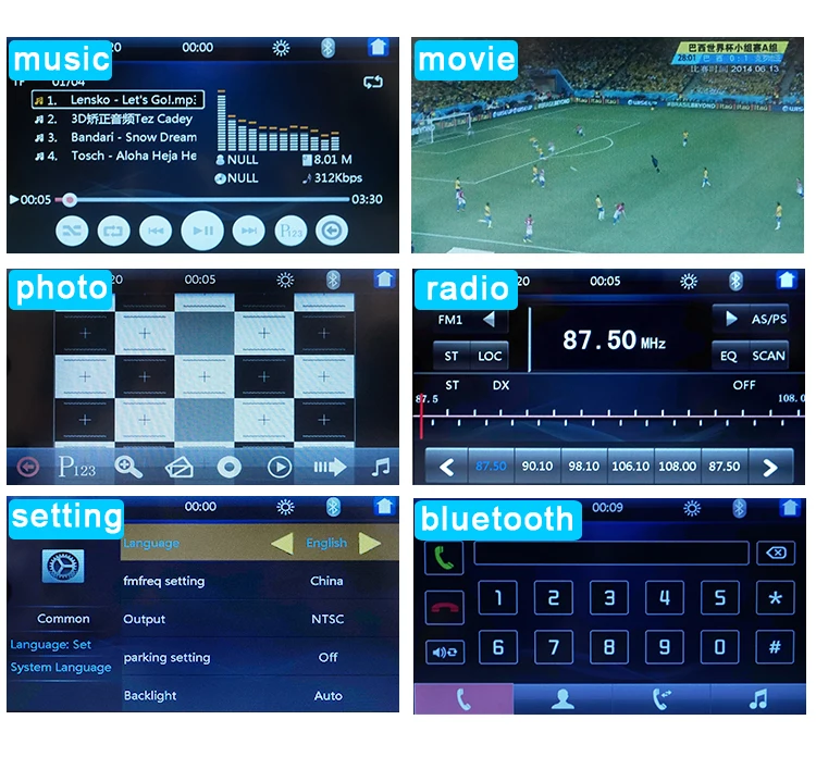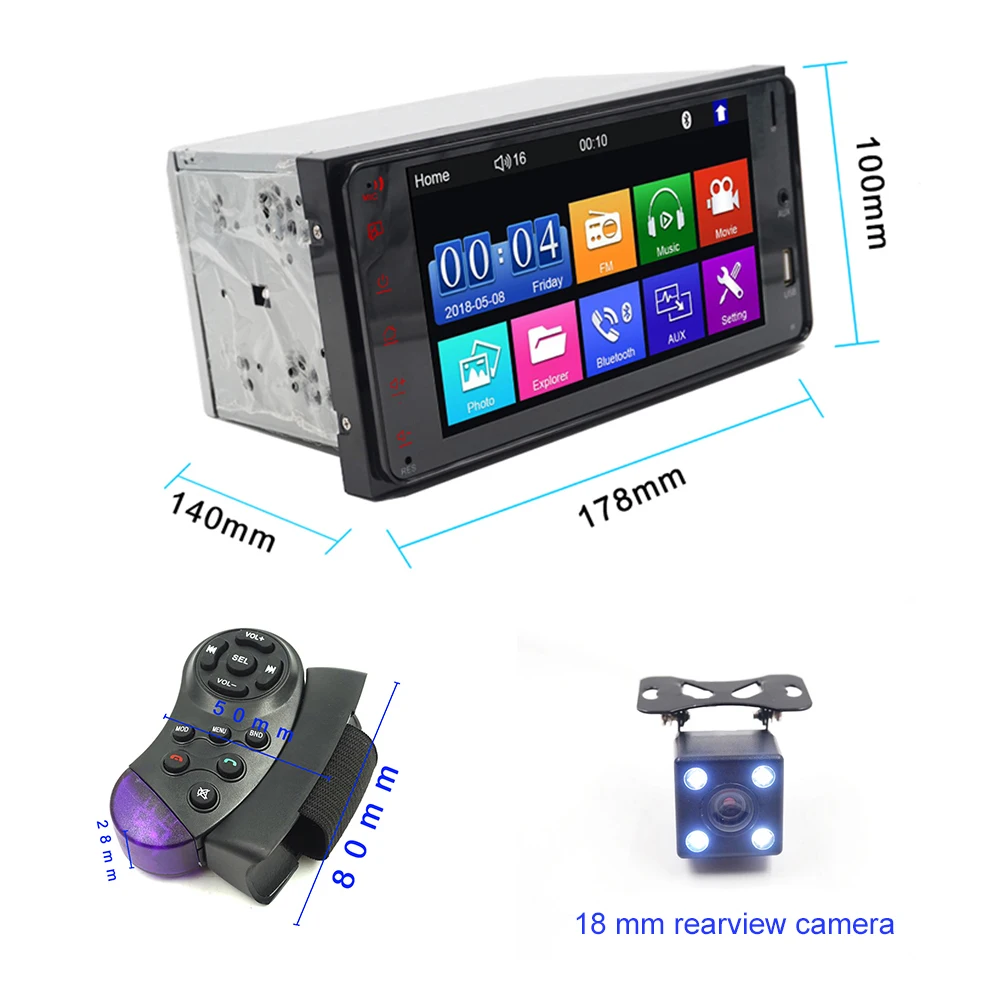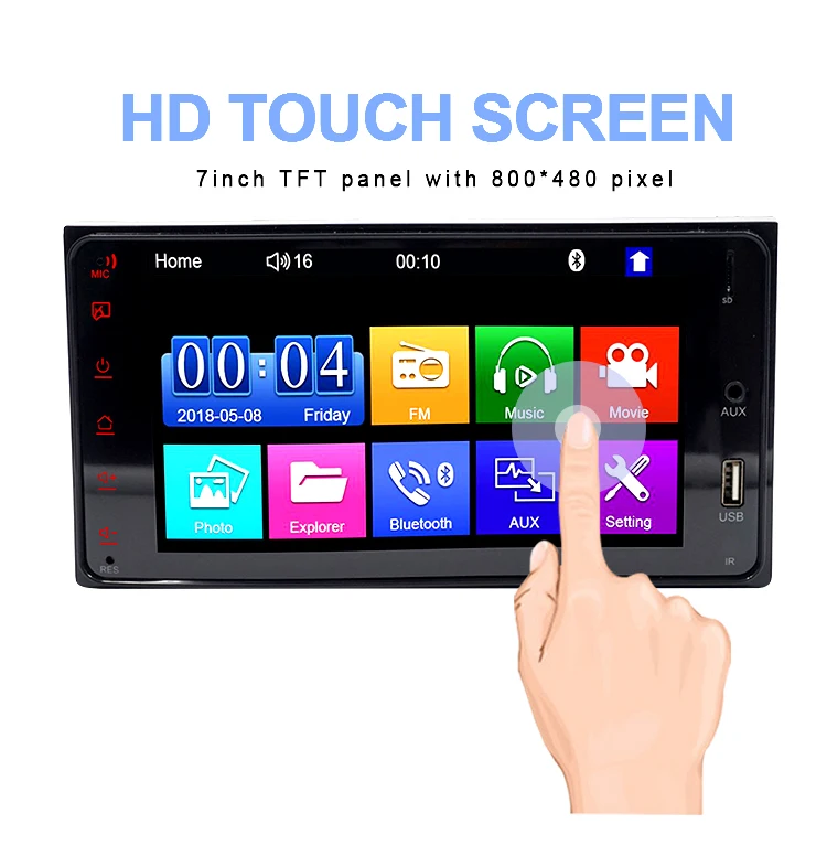 1. Функция заднего вида: Поддержка функции заднего вида. 2 、 высокой четкости сенсорный Экран: около 7-ми дюймовый двойной-заданный высокой четкости сенсорный TFF Экран Поддержка файлов ниже 1080P формат. Семицветная подсветка кнопки 3. Bluetooth-плеер: bluetooth-вызов и функция Bluetooth. 4. Функция fm-радио: функция fm-радио 5. Быстрая зарядка: функция быстрой зарядки: мобильный телефон и мобильный телефон.