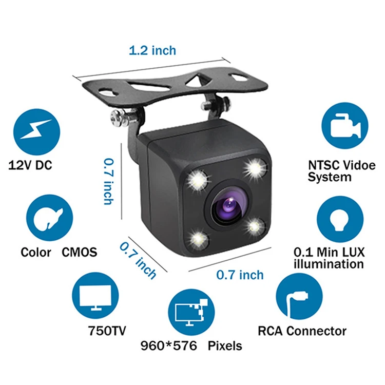 Датчик изображения: 1/4 PC7070 ТВ система: PAL/NTSC опционально Эффективные пиксели: 640*480 Горизонтальное разрешение: 480 ТВ-линий Широкий угол: 170 градусов, Горизонтальный угол: 110 градусов Зона обнаружения: 3,8 мм * 2,9 мм Скорость затвора: 1-1/12000 Гамма-номер: 0,45 Минимальная освещенность: 0,01 Lux/F = 1,2 (0 Люкс с ИК вкл.) Видеовыход: разъем RCA, другой дополнительный разъем, 1,0 VP-P,75 Ом Потребляемая мощность: 130 мА Источник питания: DC12V Рабочая температура: -20 ℃ - 75 ℃,RH 95% MAX Температура хранения: -40 °C- 80 °C RH95 % MAX Степень водонепроницаемости: IP67 Цветная камера ночного видения