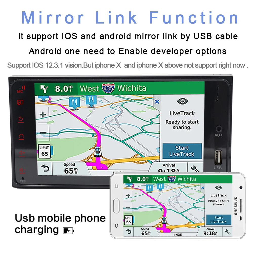 1. Поддержка формата воспроизведения аудио MP3/WMA/WAV/FLAC/APE и т. д. 2. Поддержка формата воспроизведения видео RMVB/RM/VOB/MP4/AVI/3GP и т. д. 3. С передним портом USB2.0 и слотом для карт TF 4. Функция BT, бесплатный звонок и BT Музыка 5. Усилитель на полевых МОП-транзисторах: 50 Вт x 4 Максимальная выходная мощность 6. Диапазон FM: 87,5 ~ 108,0 МГц 7. Полный ИК-пульт дистанционного управления 8. Отключение питания с функцией автоматического хранения памяти в режиме радио или TF/USB 9. Функция часов 10. Функция отключения звука 11. Регулировка баланса басов и высоких частот, переднего и заднего, левого и правого динамиков 12. Функция переднего AUX 13. Две функции вывода waVideo 14. Двухсторонняя функция аудиовыхода RCA 15. Функция одностороннего ввода видео 16. Функция ввода камеры заднего вида 17. Функция управления рулем 18. Вход заднего микрофона 19. Телефонная связь с телефоном Android и телефоном IOS Android должен включить опции разработчика. Поддержка IOS 12.3.1 vision. Но iphone X и iphone X выше не поддерживают прямо сейчас.