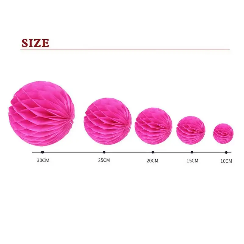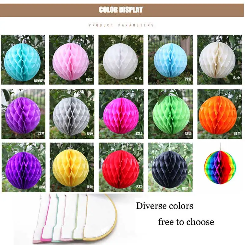 Название: ячеистый бумажный шарикМатериал: бумагаДиаметр: 4 дюйма (10 см),6 дюймов (15 см),8 дюймов (20 см),10 дюймов (25 см),12 дюймов (30 см)
