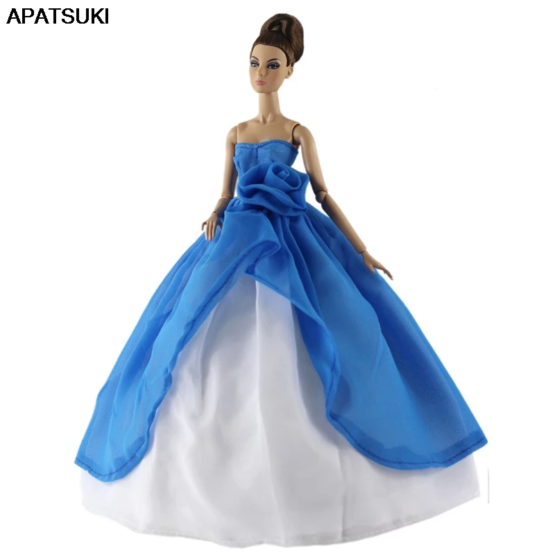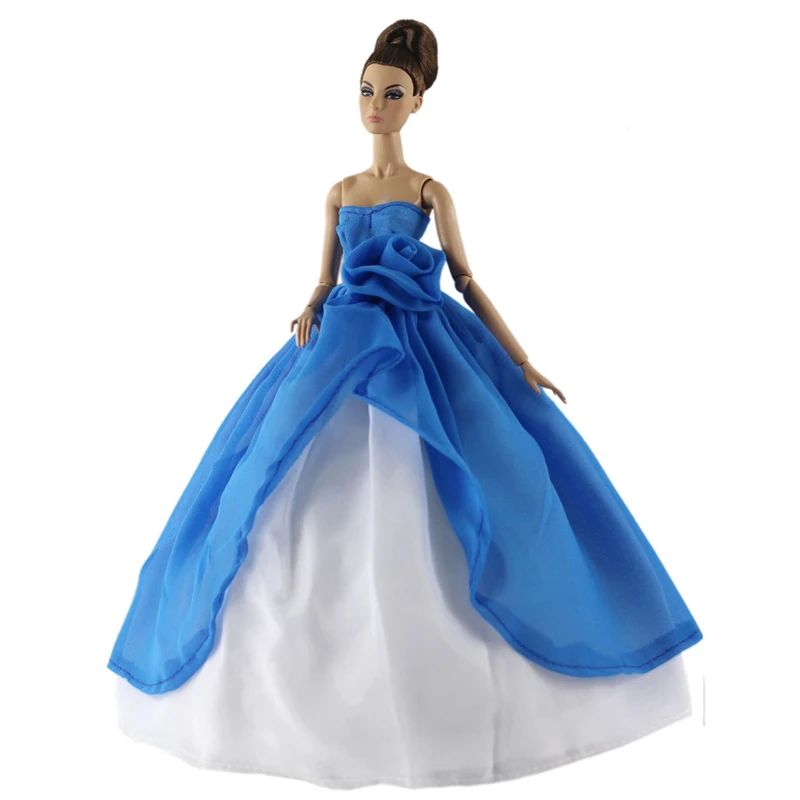 Свадебное платье для кукол Барби, Голубая роза, с открытыми плечами, наряды, 16