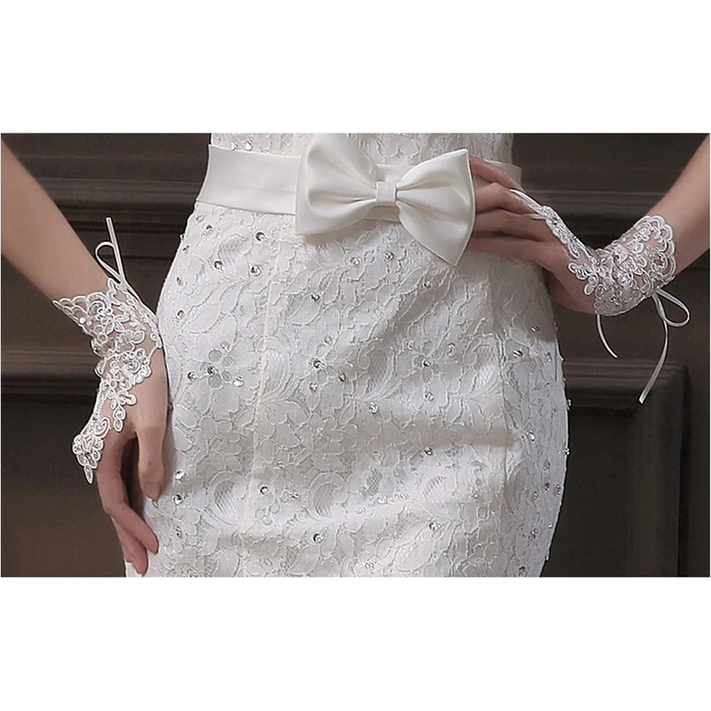 Короткие свадебные перчатки без пальцев, свадебные белые или цвета слоновой кости для невесты, Красные кружевные аксессуары