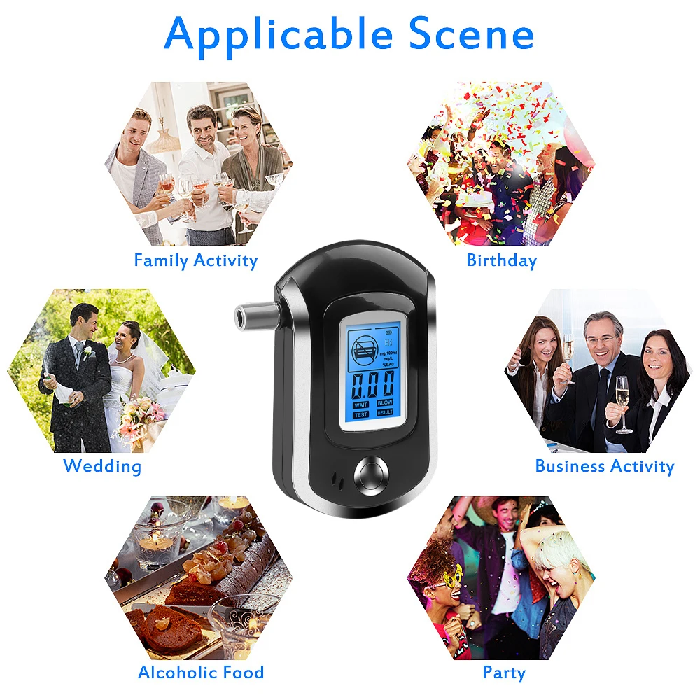 Цифровой полицейский мини-Алкотестер, черный портативный полицейский цифровой алкотестер с ЖК-экраном AT6000