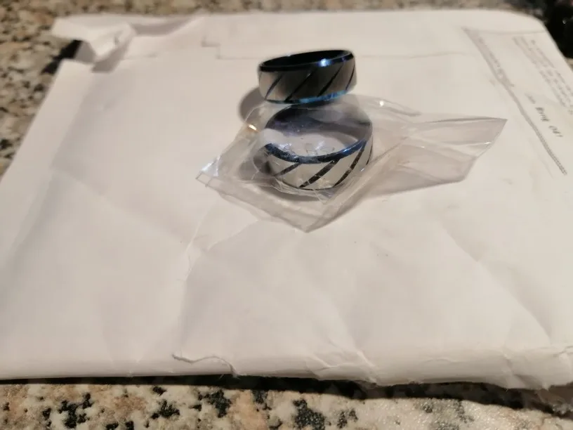 доставка 25 дней. трек по Украине не отслеживался. упаковка стандартная - конверт с пупыркой. качество кольца отличное. без брака, внутри хорошо отшлифовано. смотрится чудесно (на фото слегка рука отекшая, поэтому не айс). продавцу больше спасибо
