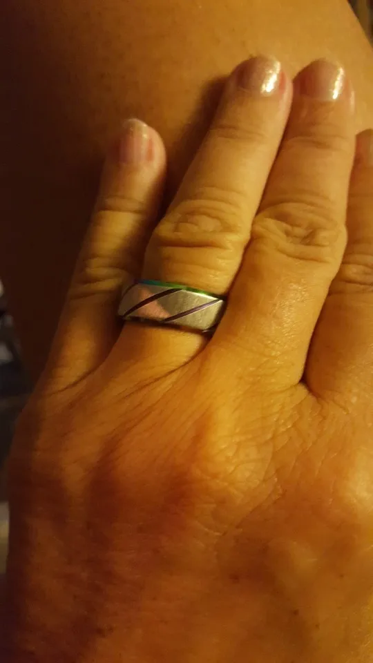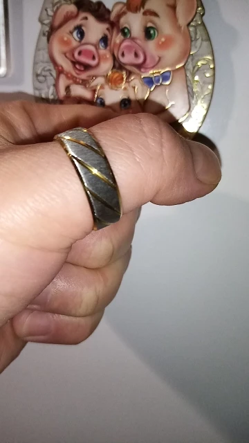 Заказала 30 декабря, пришло в Московскую область 18 января. С продавцом не общалась. Сомневаюсь, что как то влияет на похудение. Очень понравился дизайн. Почитав отзывы, что оно толстенькое, взяла размер 8. В итоге, на среднем пальце чуточку великовато, мой размер 17,5. На указательном пальце маленькое, мой размер 18,0.