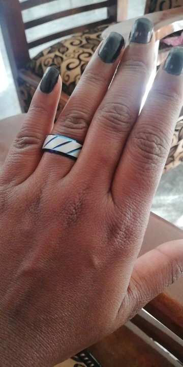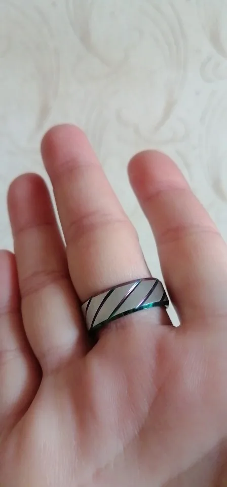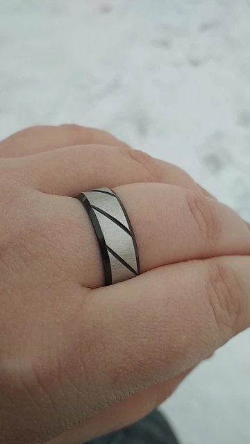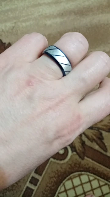 Кольцо очень эффектно выглядит. На мой 16-й отлично подошла 6-ка. Кольцо широкое, но тем не менее носить очень комфортно. Спасибо продавцу, товар рекомендую.