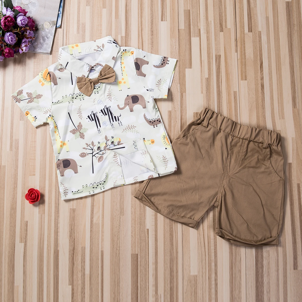 PudcocoОдежда для маленьких мальчиков футболка с короткими рукавами и принты животных из мультфильмов топы и укороченные штаны комплект из 2 предметов одежда из хлопка