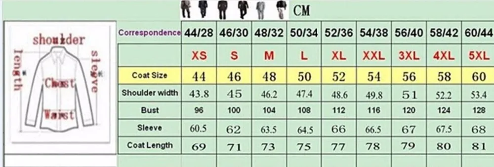 -Пиджак: обхват груди: 48,8 inch Плечи: 20,5 дюйма одежда Длина: 31,5 Дюймов