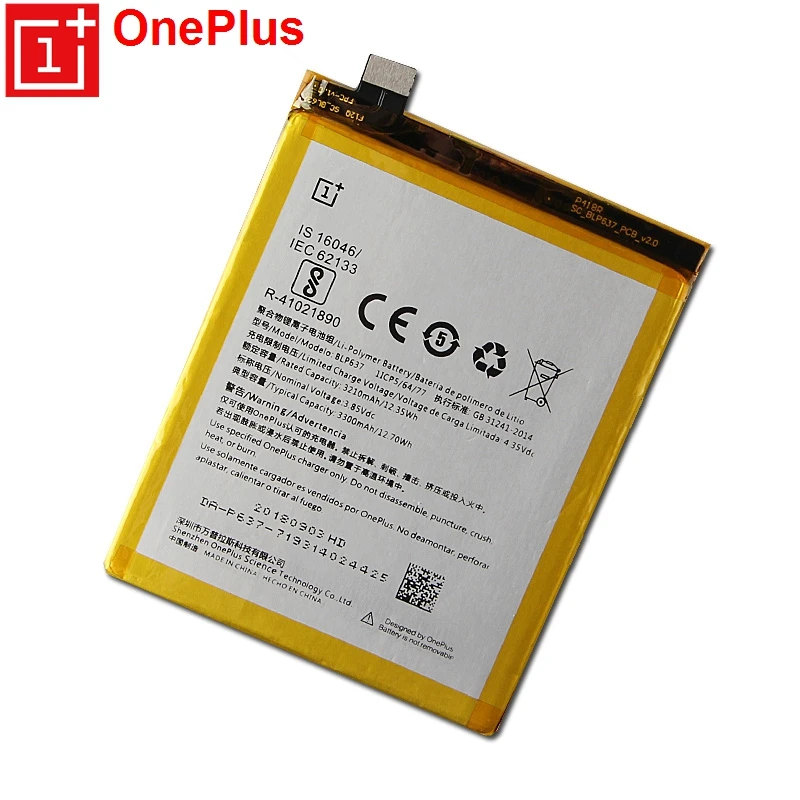 Большое спасибо за покупку нашей продукции, наша компания обещает гарантию 12 месяцев, батарея имеет любую проблему качества, в течение 12 месяцев, мы будем свободны для покупателя, чтобы отправить новый аккумулятор. Escription: 1. Литий-ионный аккумулятор: BLP537 2. Напряжение: 3,8 V 3. Емкость: 3300 мАч 4. Использование: для Oneplus 5 5. Безопасность и окружающая среда: двойные функции защиты. Двойная IC и PCB электрическая плата защищают от разряда заряда и короткого замыкания. 6. Наша батарея одного размера с оригинальной батареей. 7: Сделано в CNINA