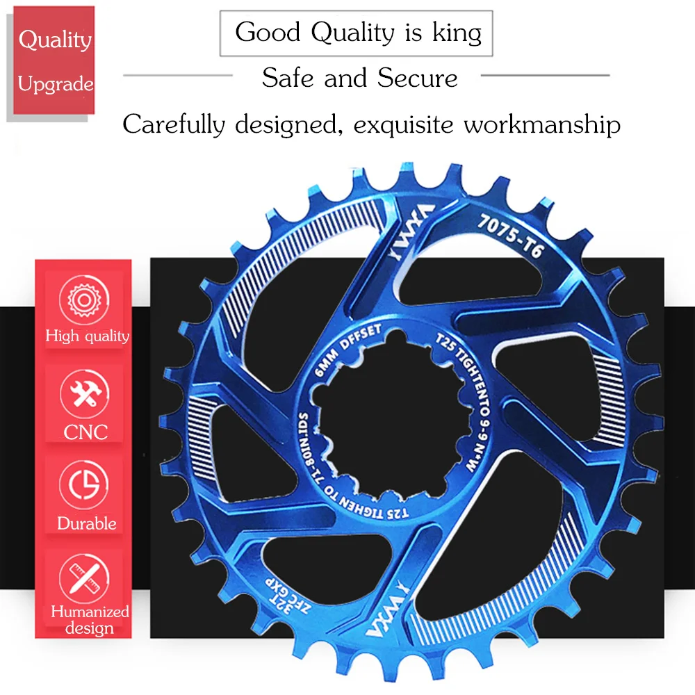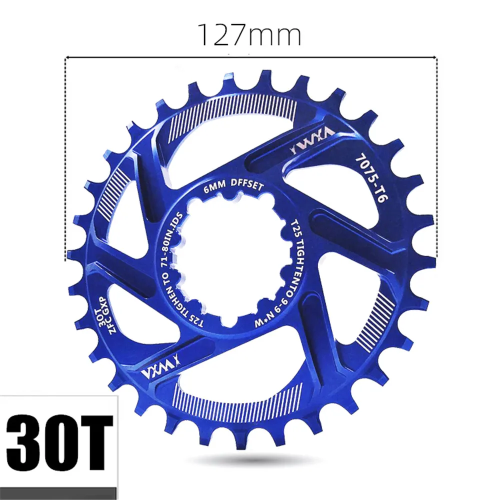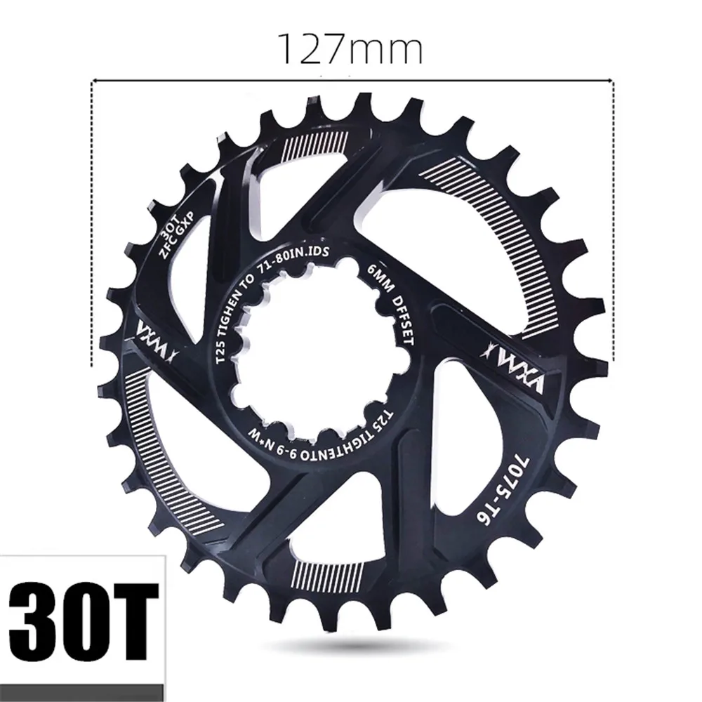Бренд: VXMМатериал: 7075-T6 авиационный алюминиевый сплавЦвет: черный, красный, синий, зеленый, желтыйПроцесс: ЧПУ высокоскоростная гравировка и фрезерованиеКоличество зубьев: 30TОфсетная печать: 6 ммТолщина: диск 10 мм ортодонтический 3,7 мм отрицательный зуб 1,9 ммРасширенный дизайн зубаУникальная форма зуба предотвращает поломку цепи