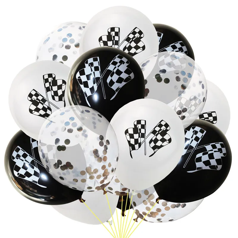 Клетчатый гоночный автомобиль тематические вечерние набор одноразовой посуды черный, белый цвет Гоночный флаг воздушных шаров из латекса, пижама для детей и взрослых, вечерние Декор поставки