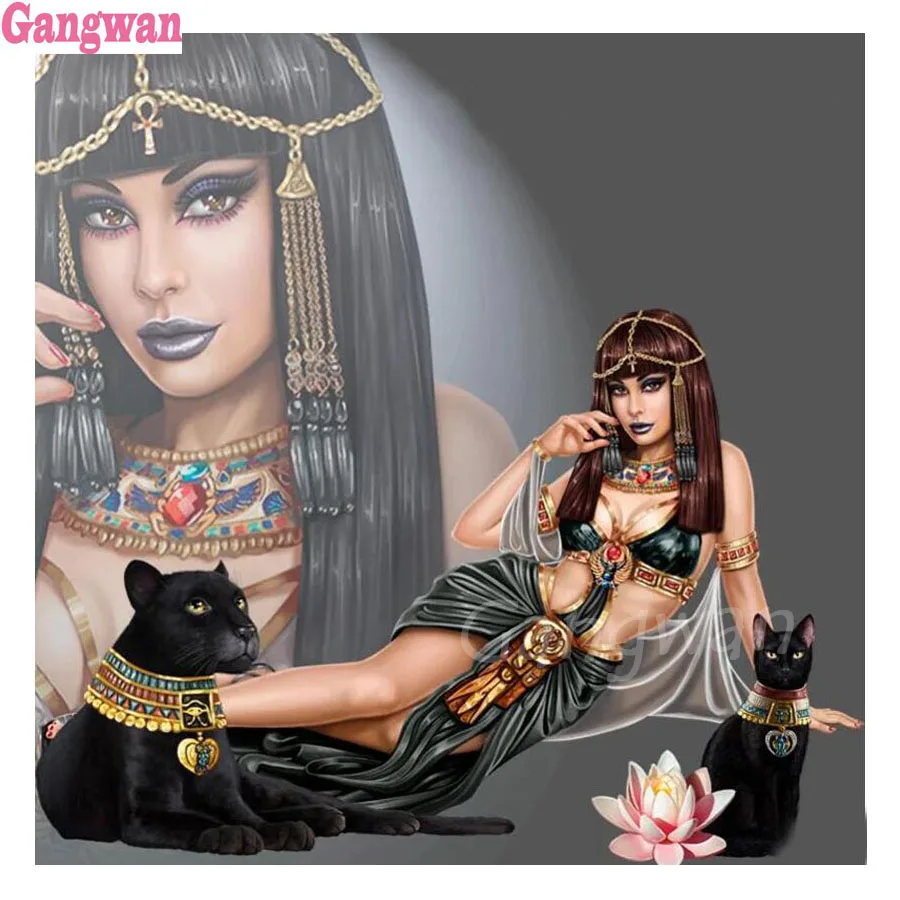 3d-алмазная вышивка Египет, красота, женщины, портрет, вышивка крестиком, квадратная вышивка, сделай сам, алмазная живопись, Черная пантера, рукоделие