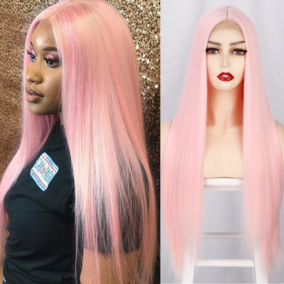 Парик I's a wig, розовый парик на сетке, Синтетические длинные прямые парики для женщин, парики для косплея, черные, красные светлые волосы