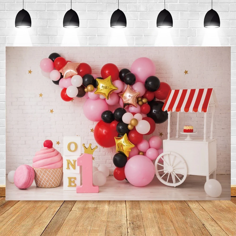 Фон для фотосъемки новорожденных с изображением торта в честь первого дня рождения