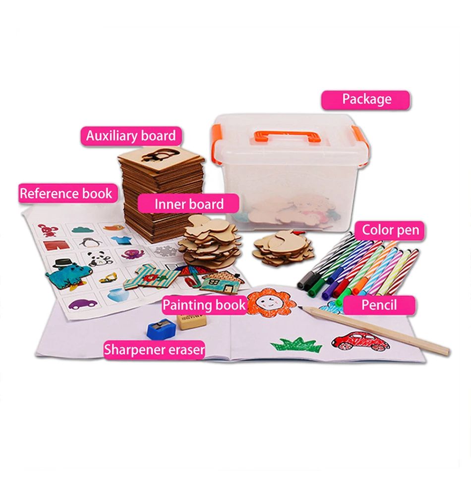 Трафареты для рисования детские деревянные, 100 шт.
