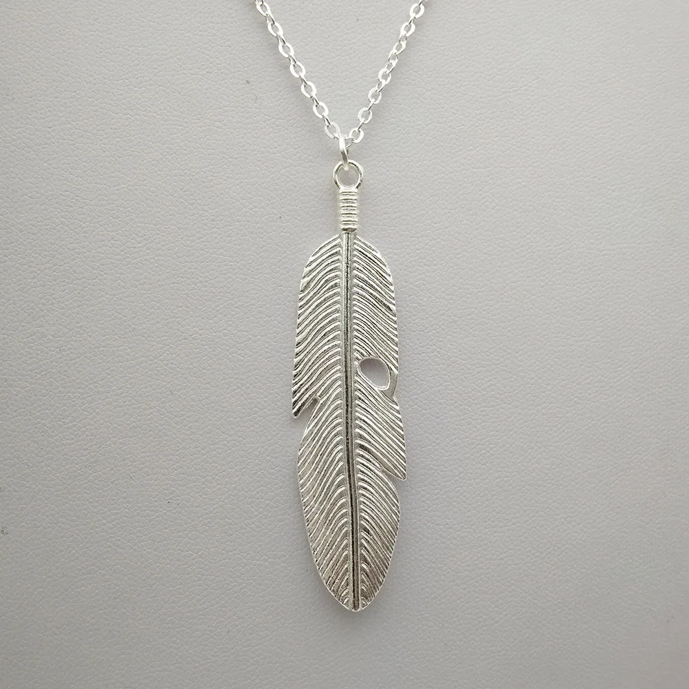 Простое винтажное ожерелье с подвеской в виде пера, длинная цепочка на свитер, массивное ювелирное изделие, ожерелье для женщин