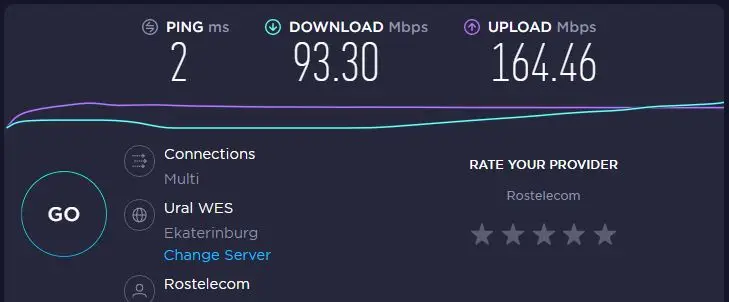 Приехал за 20 дней до Пензы. Всех настроек не пробовал. Speed test показывает 50 мбс