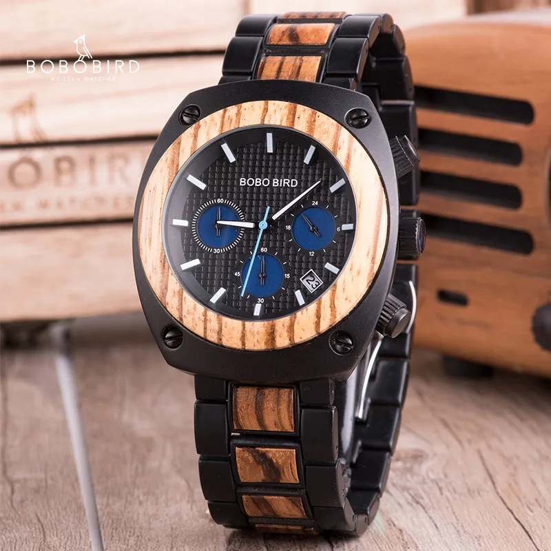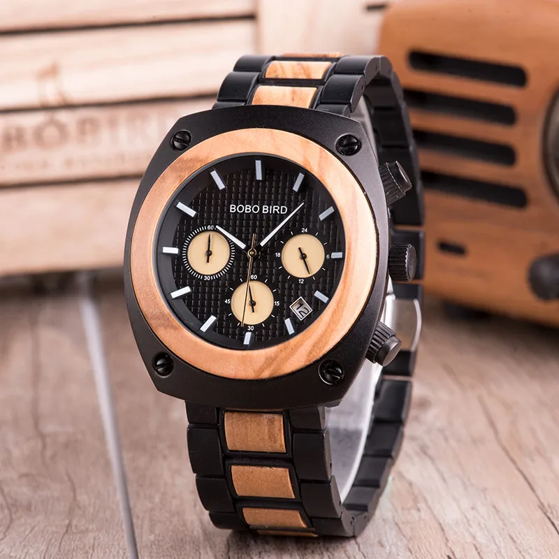 Мужские часы BOBOBIRD, часы из дерева и нержавеющей стали, секундомер, хронограф, часы, мужские часы в подарочной коробке, L-T08