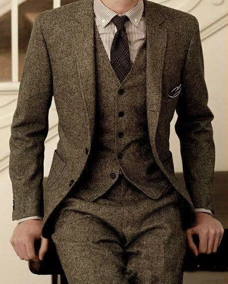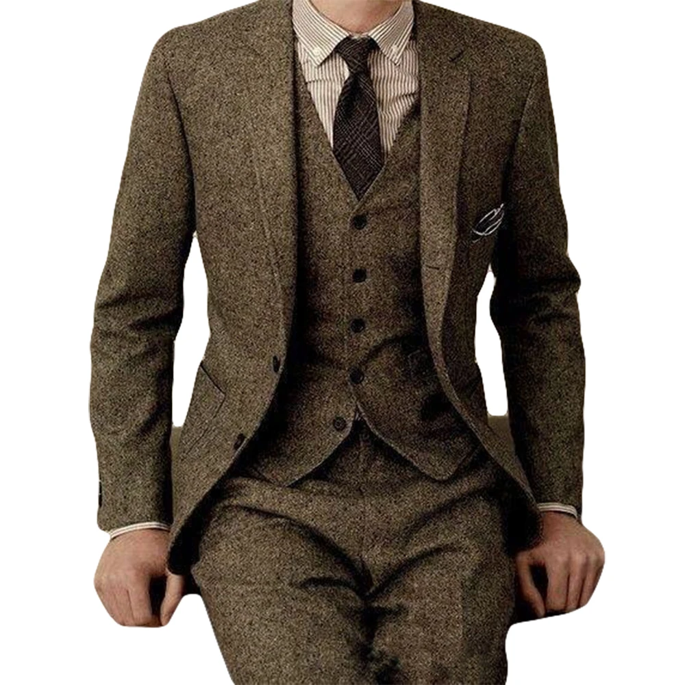 Мужской твидовый костюм, приталенный Свадебный костюм из 3 предметов, пиджак, смокинг
