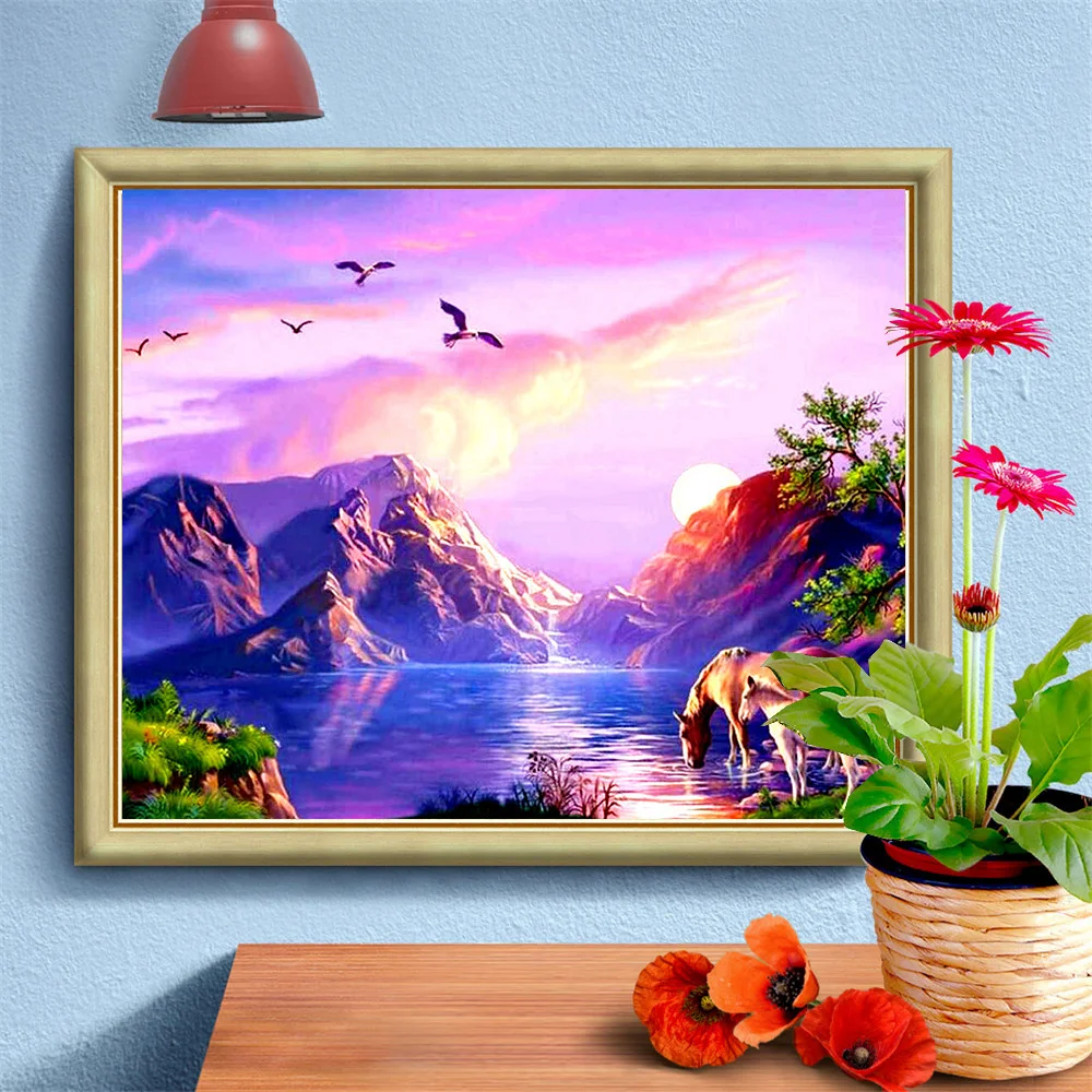 HUACAN полностью квадратная Алмазная Картина Закат пейзаж 5D Вышивка пейзаж украшение дома Алмазная мозаика ручной работы