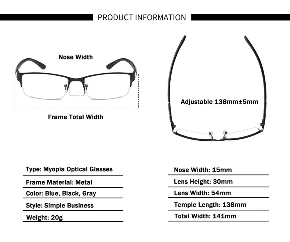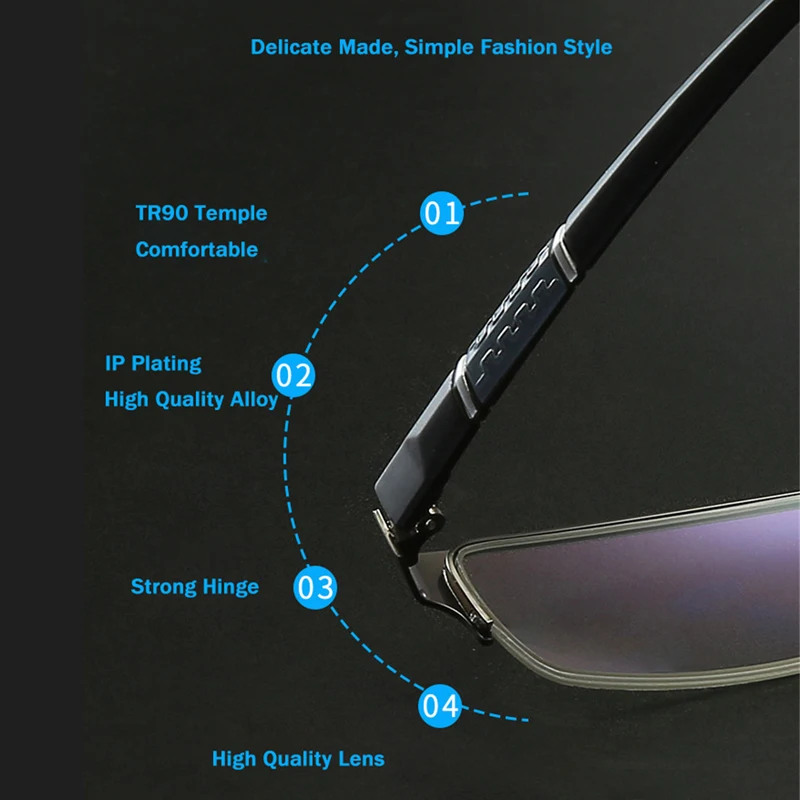 Очки iboode мужские в полуоправе, металлические, с защитой от синего света, в деловом стиле, для близорукости, 0-оправа для очков при близорукости 1,0, 6,0
