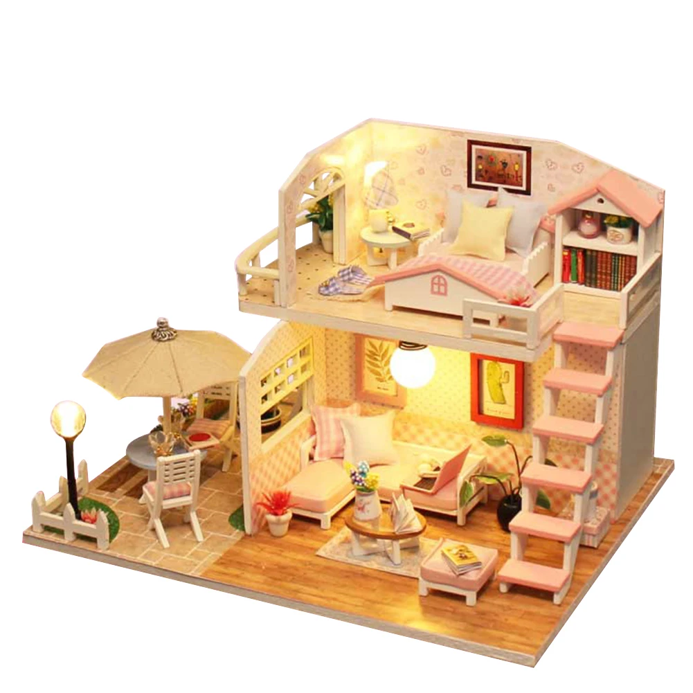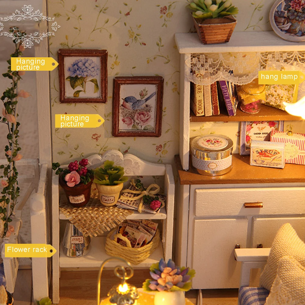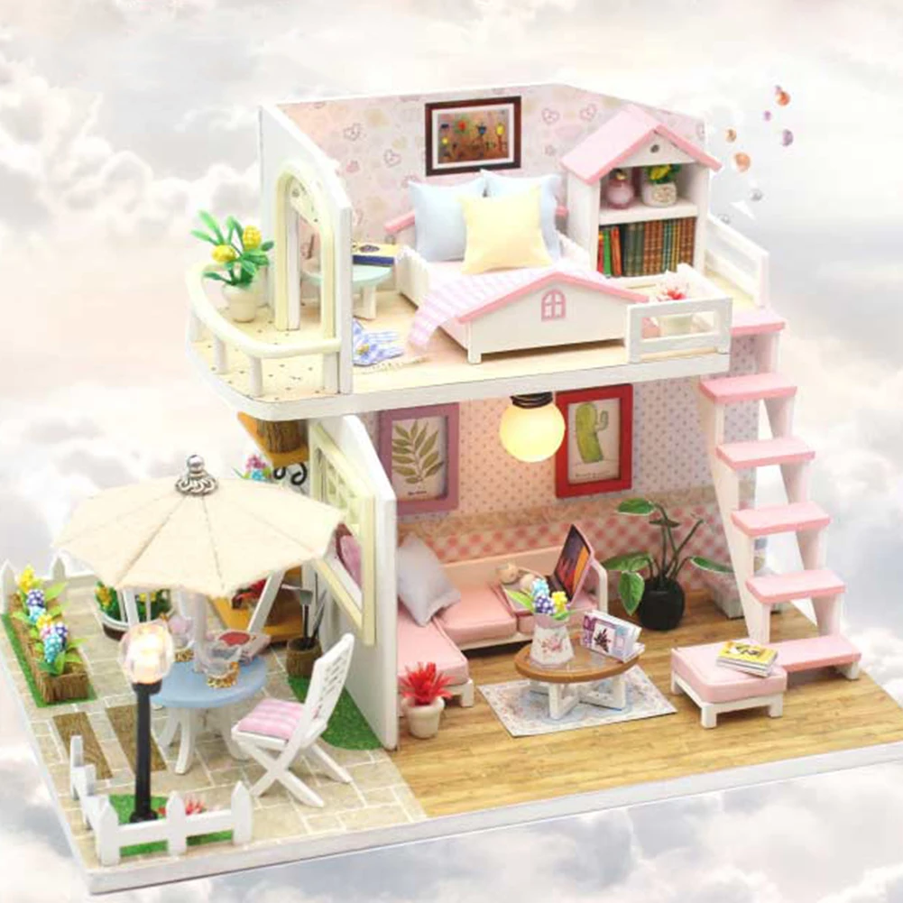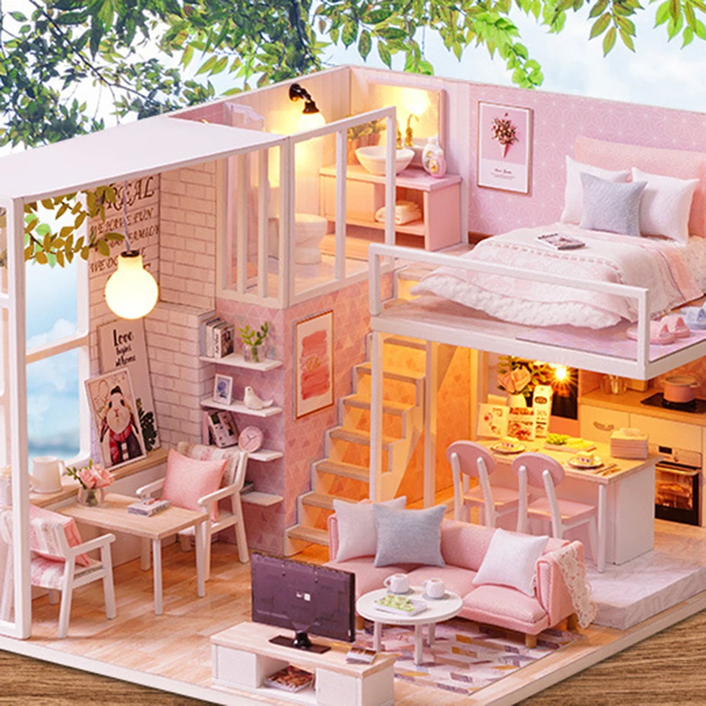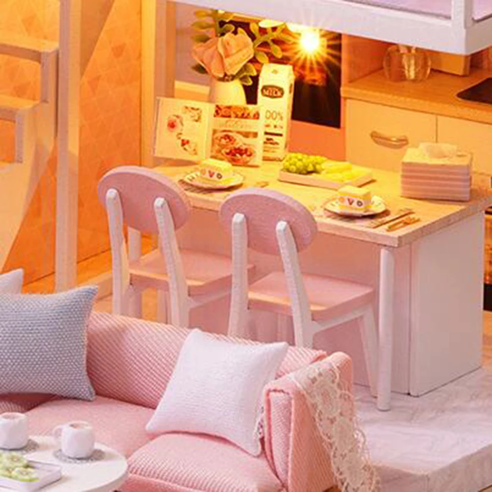 Светодиодный Миниатюрный Кукольный дом сделай сам, большой деревянный кукольный домик для кухни, Миниатюрная игрушка ручной работы, подарок на Рождество