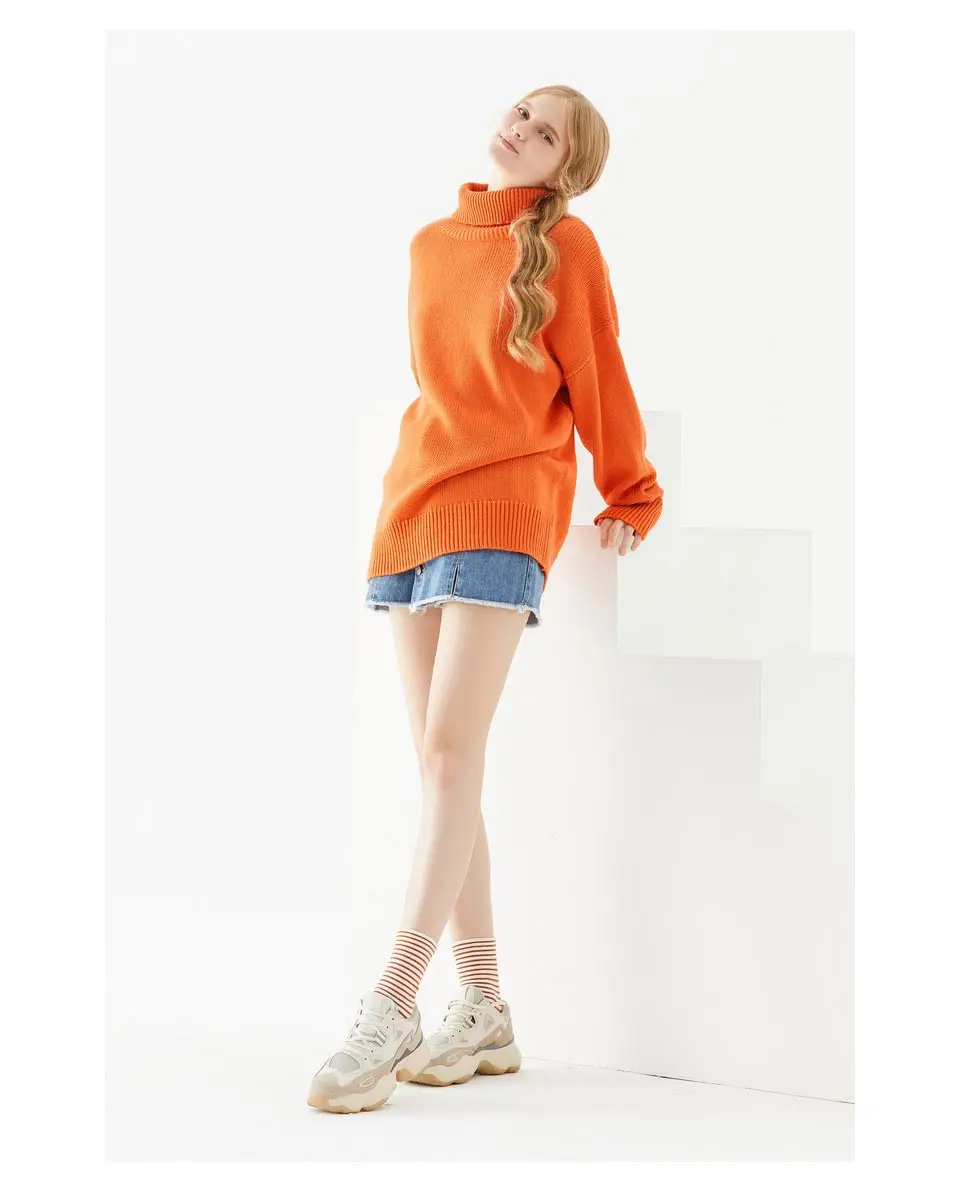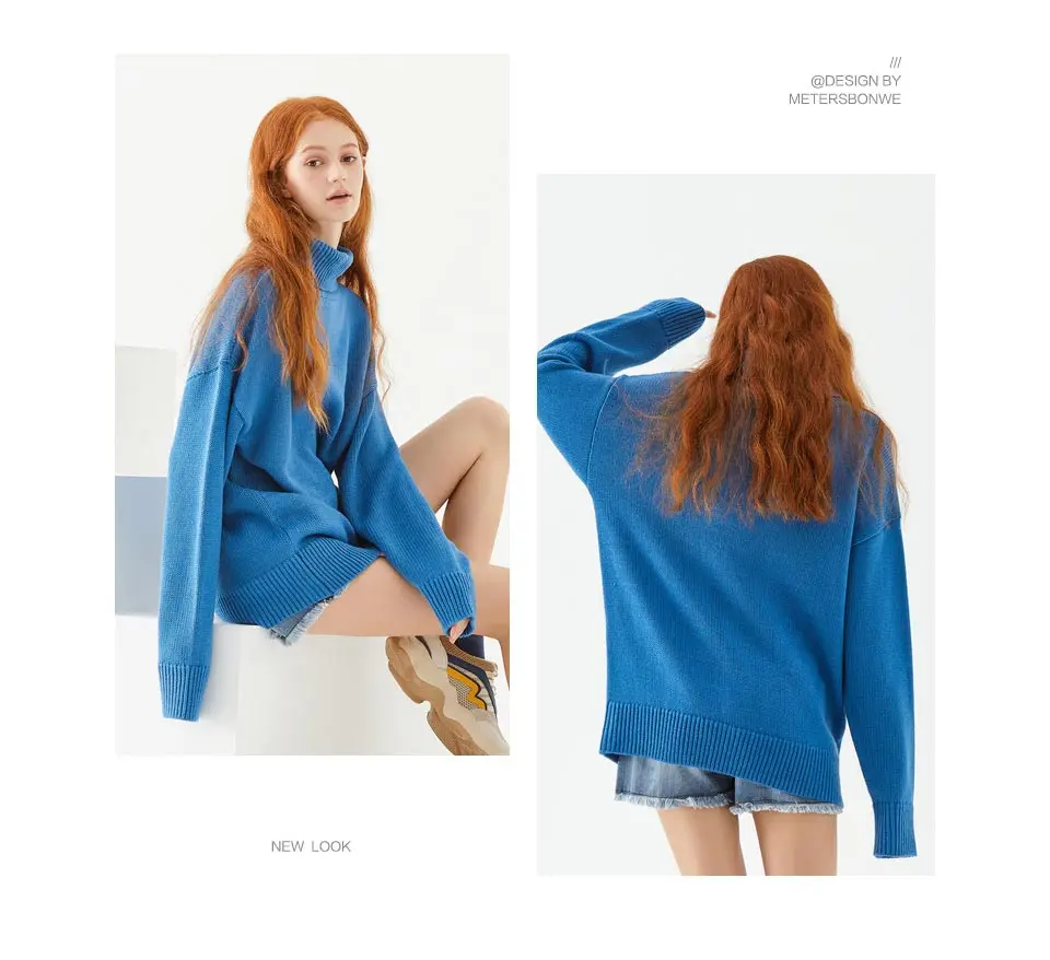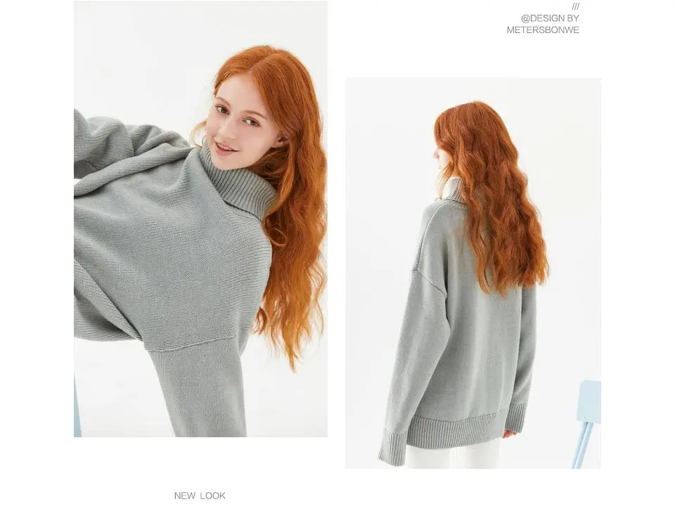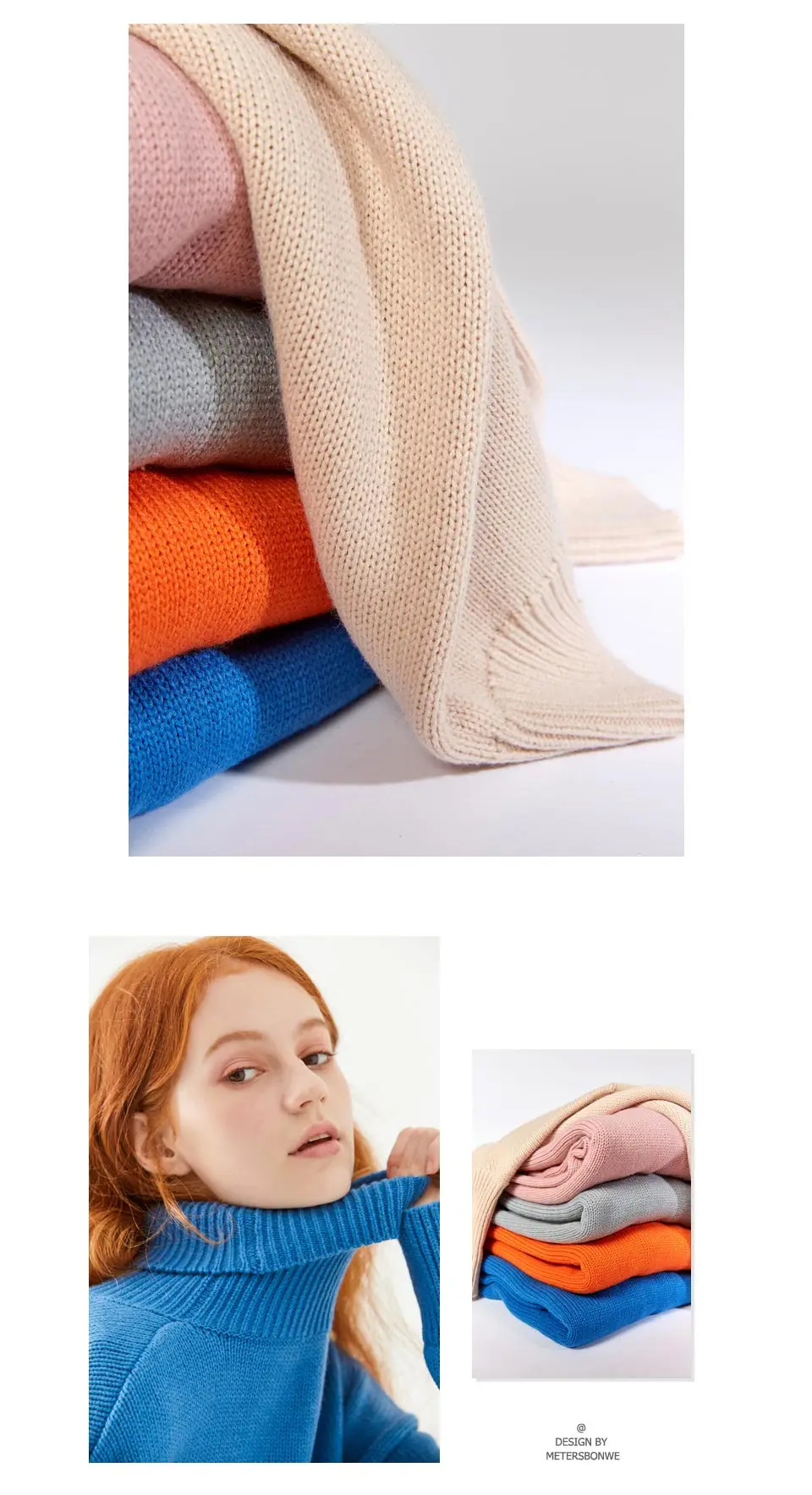 Вязаный свитер Metersbonwe в стиле оверсайз, женские пуловеры, водолазка, топы, весна-осень, базовые женские свободные свитера карамельных цветов