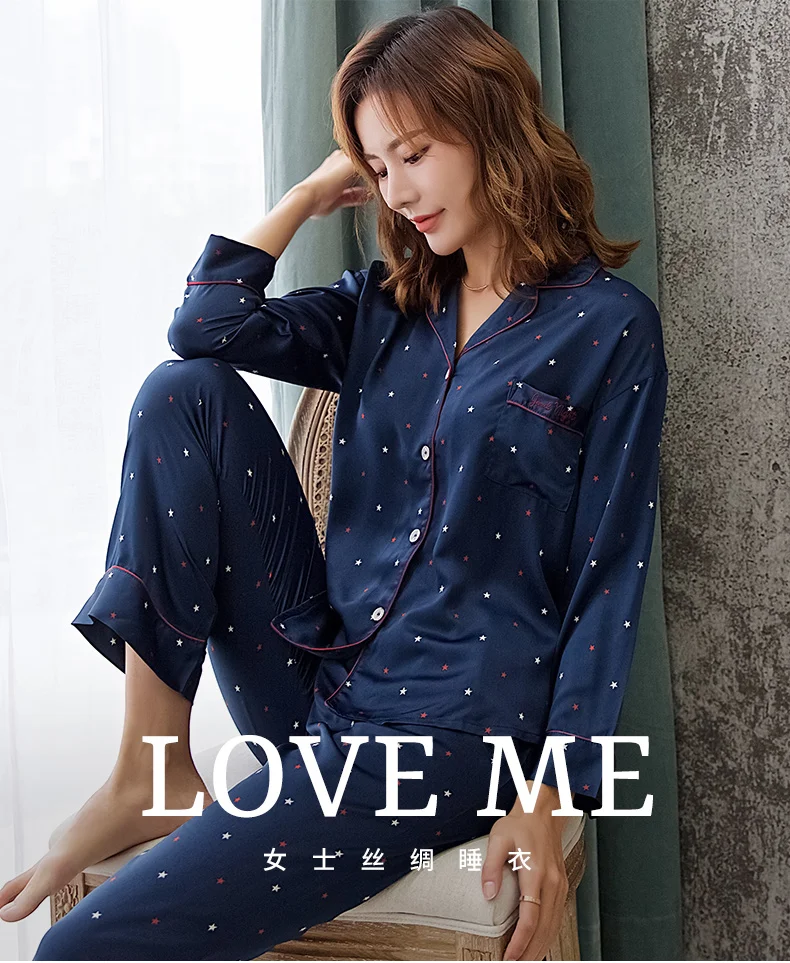 Шелковая пижама, Женский весенне-осенний Шелковый комплект из двух ...