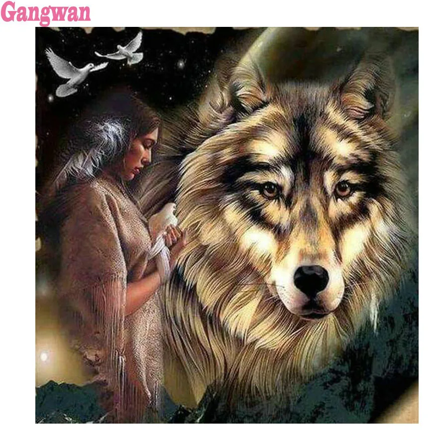 Алмазная живопись, алмазная вышивка, индейцы, женщина 5D, сделай сам, вышивка крестиком, Алмазная мозаика, сделай сам, американское Примитивное племя волка