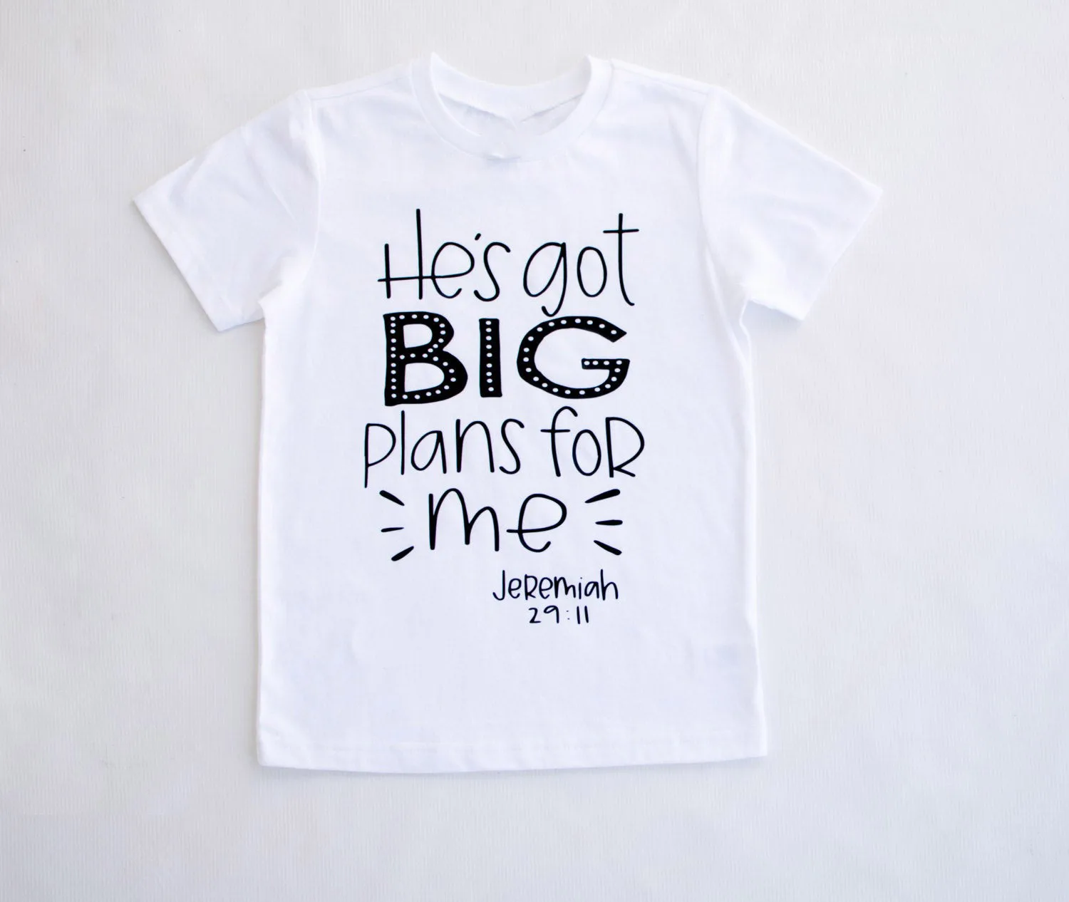Детская рубашка с принтом Иисус, он получил большие планы для меня, рубашки для мальчиков и девочек, одежда, футболка, топ, футболка для воскресенья, Детская футболка с короткими рукавами