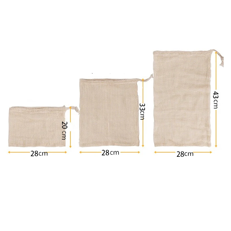 Многоразовая сумка для хранения овощей и фруктов с завязками, домашние хлопковые сетчатые мешки для овощей