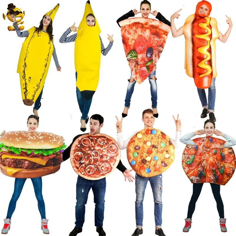 Взрослые Парные черные бананы гамбургерские пиццы Хотдог костюмы маскарадный костюм для вечеринки Хэллоуин косплей костюм унисекс