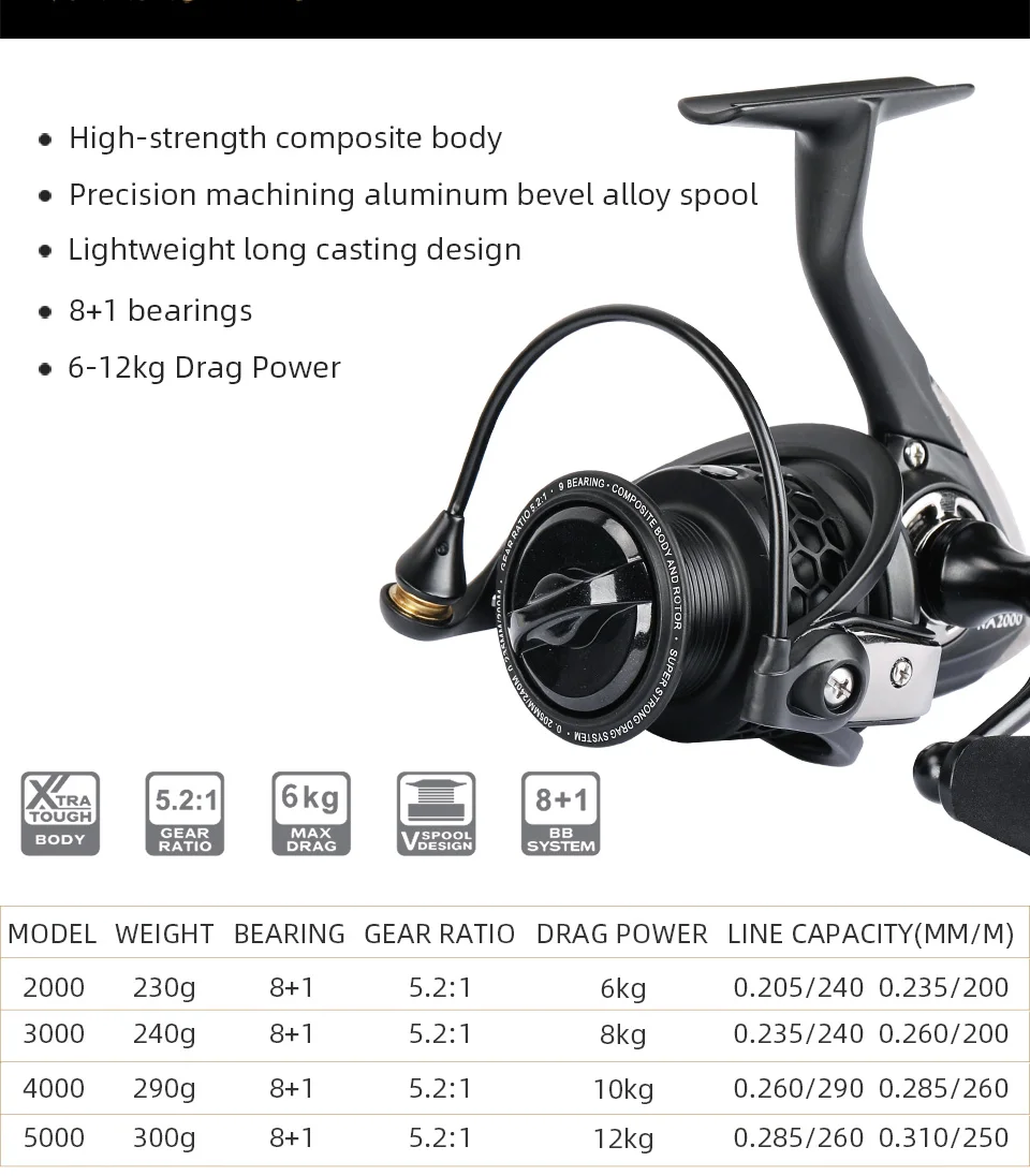 Легкая спиннинговая катушка TSURINOYA NA 2000 3000 4000 5000 Spinning Fishing Reel 9BB 5,2: 1, нанорыболовные катушки, снасти для форели, рыба, окуня, щуки, дуршлага