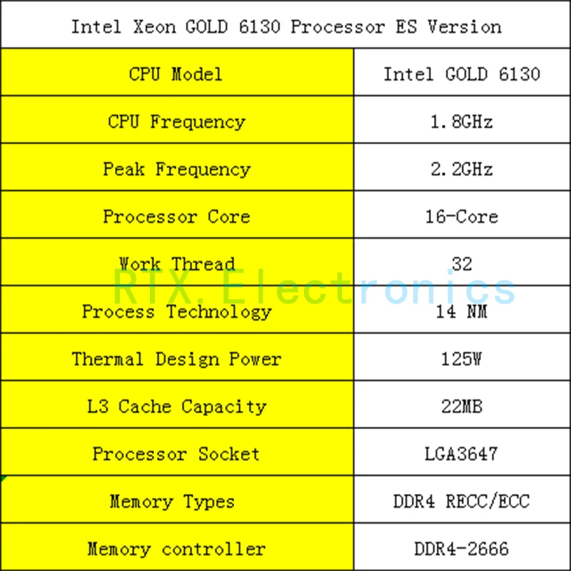 Процессор Intel Xeon Gold 6130, ЦПУ сервера LGA3647, 2,1 ГГц, 22 МБ, 125 Вт, 16-ядерный, 32 потока, 14 нм, версия ESофициальнаяQS