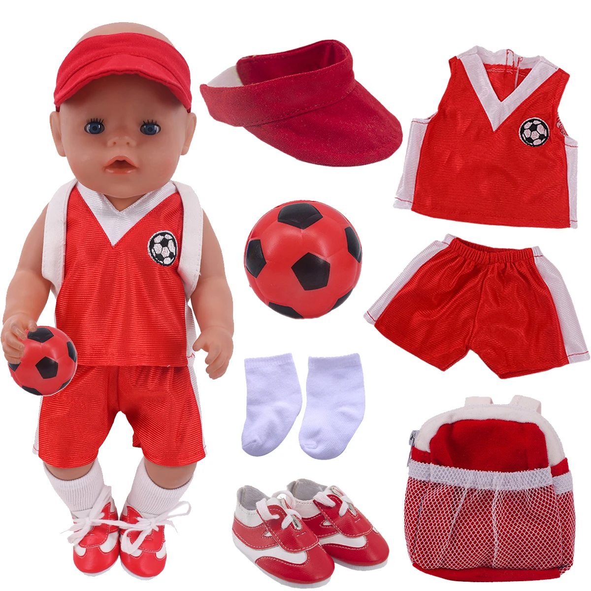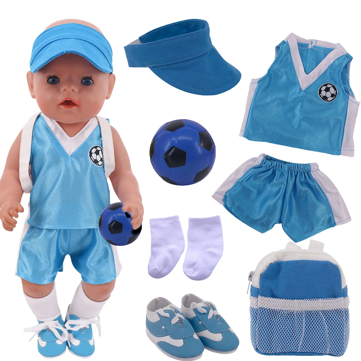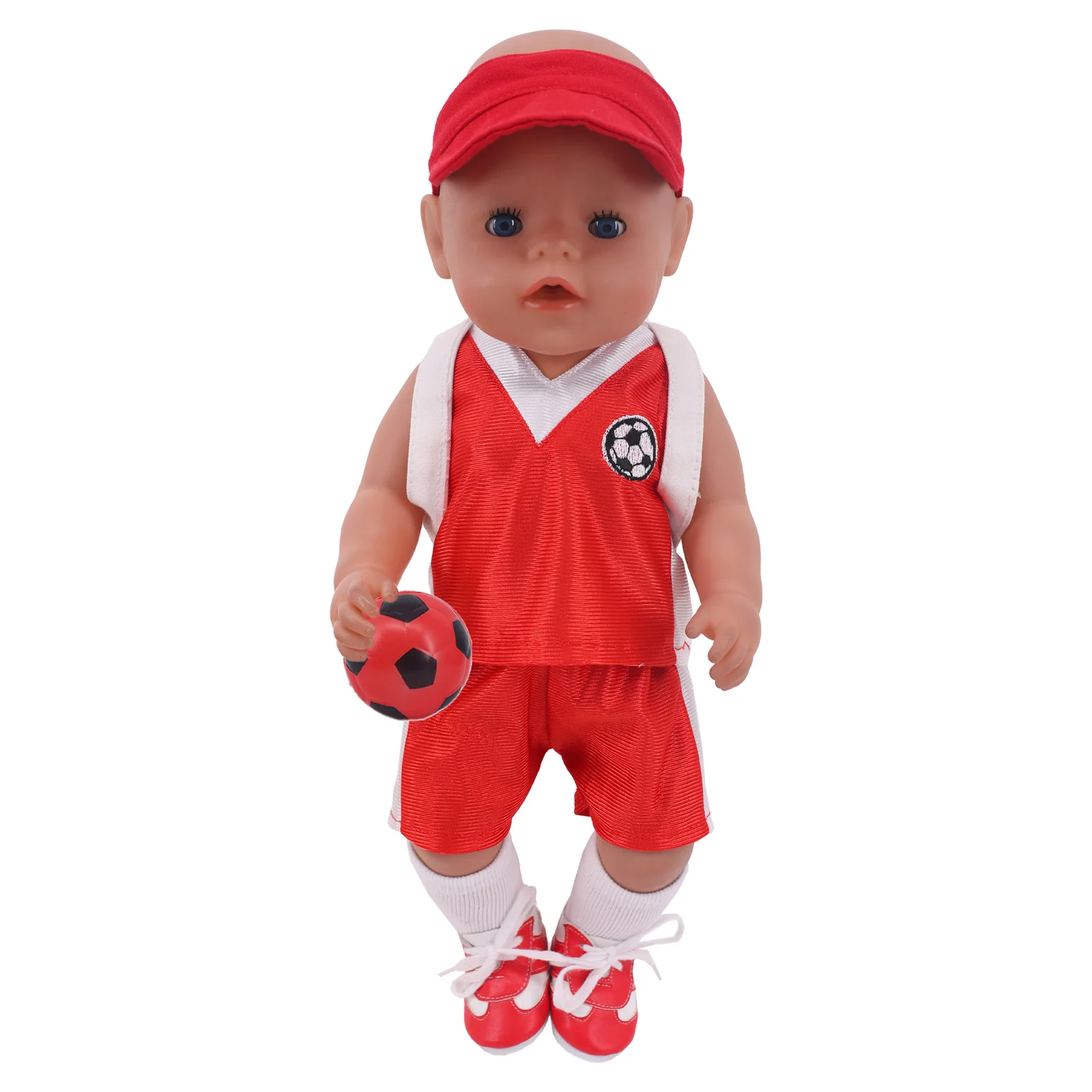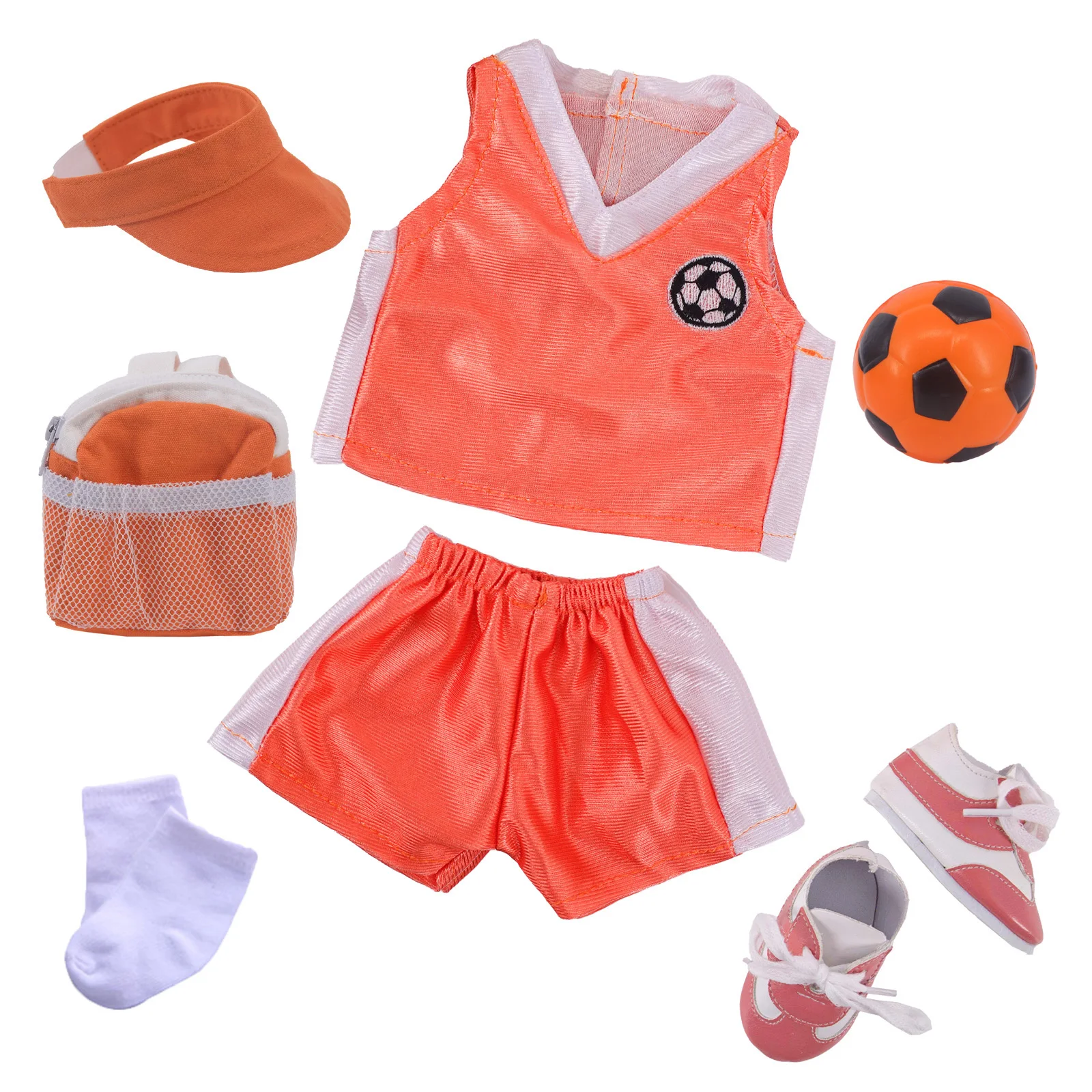 И профессиональное производство ткани для футбольной формы, очень подходит в качестве подарка для детей. И Хорошо подходит для воспитания детского интереса к футболу. И Это очень высококачественный костюм одежды для кукол, подходящий для кукол американских девочек 16-18 дюймов и кукол baby born 40-43 см и других кукол похожего размера, нашего поколения, my life doll