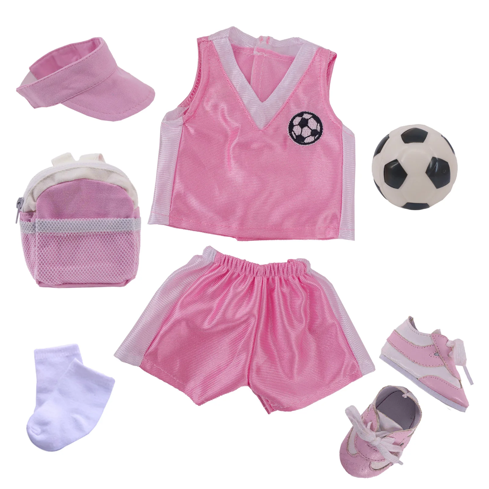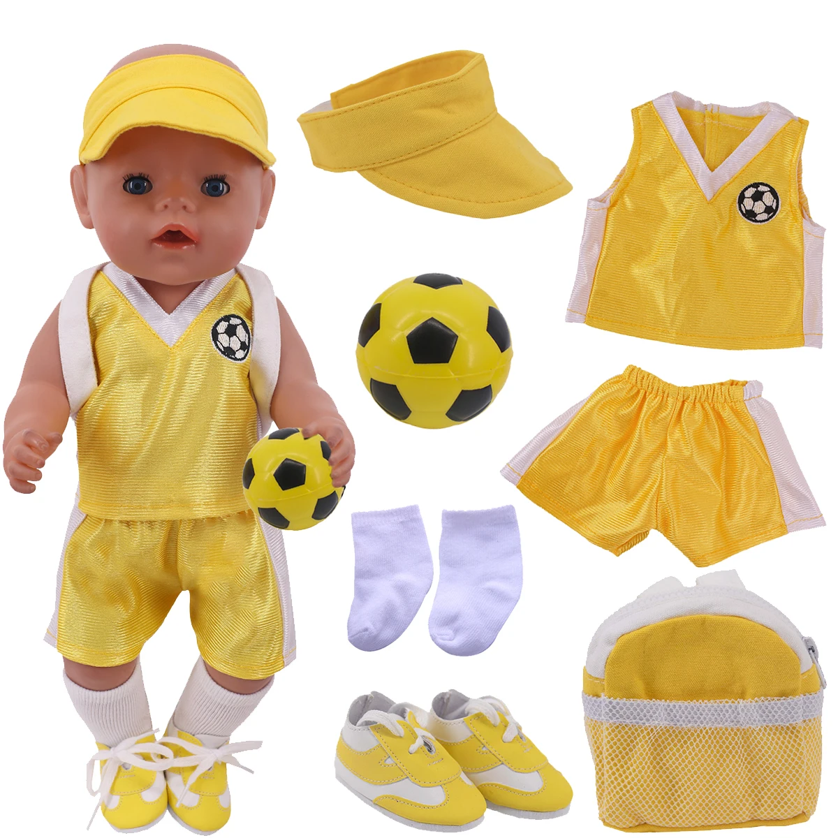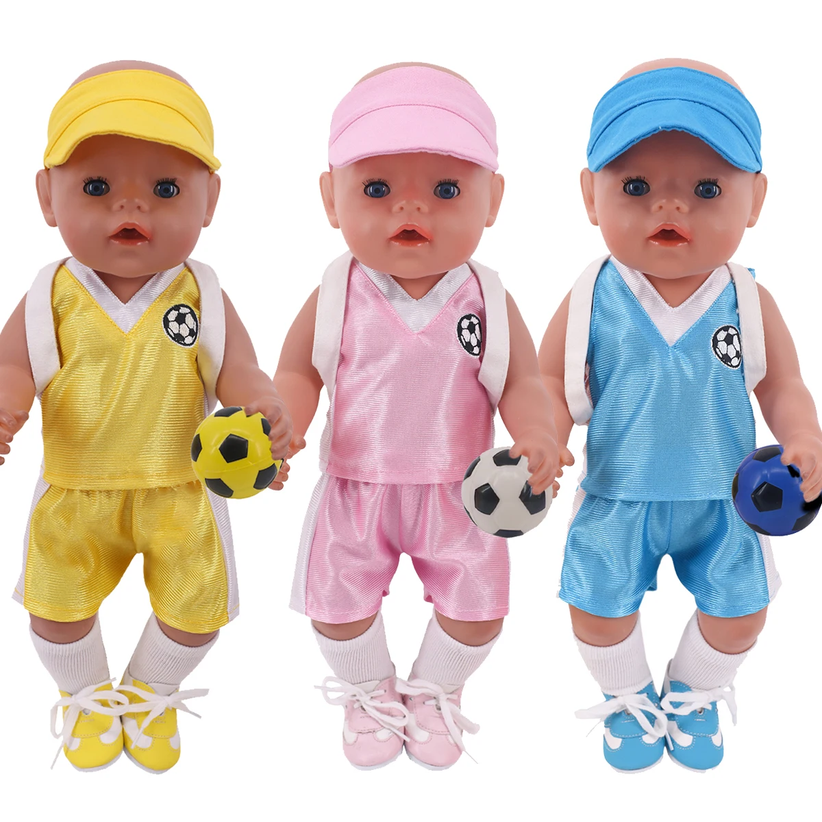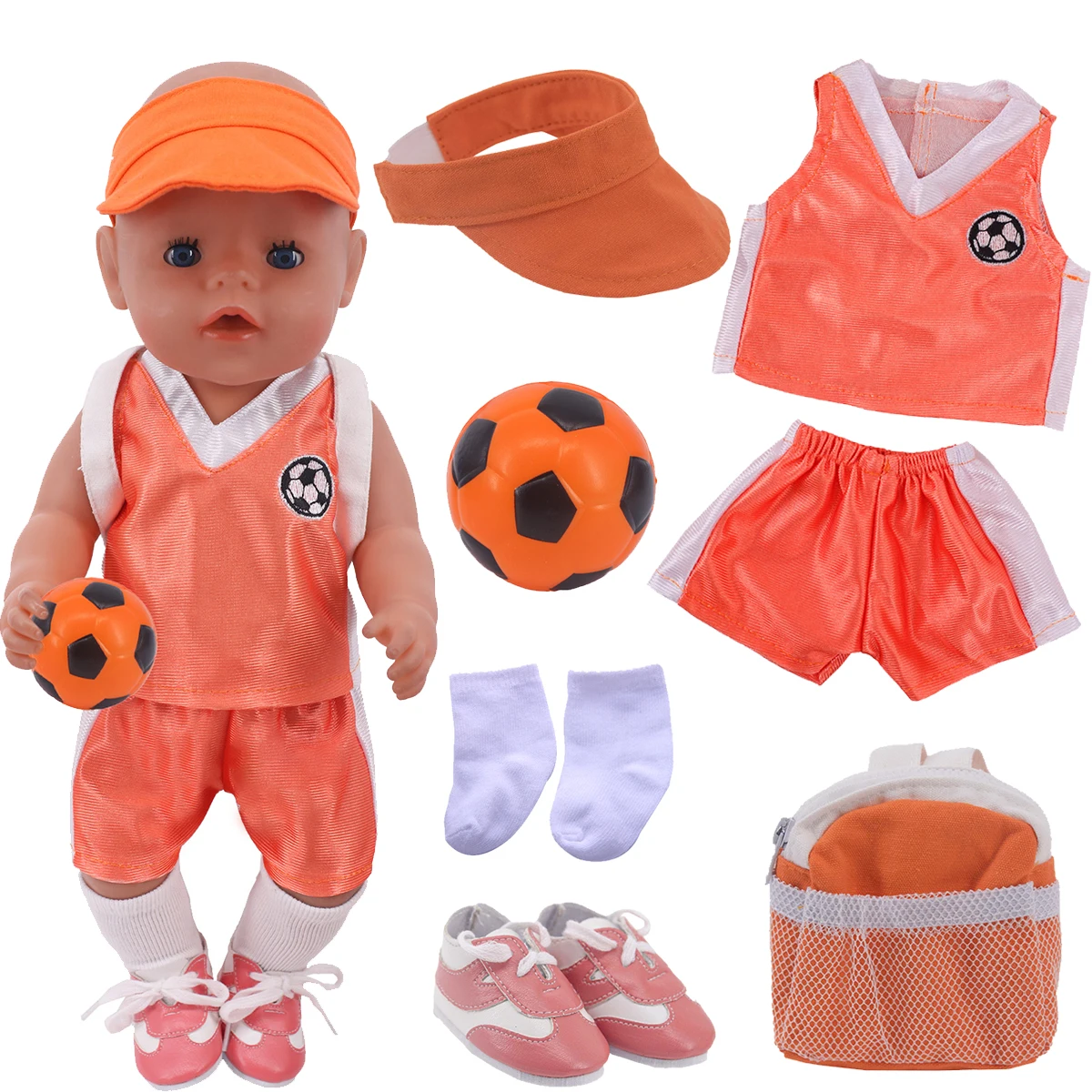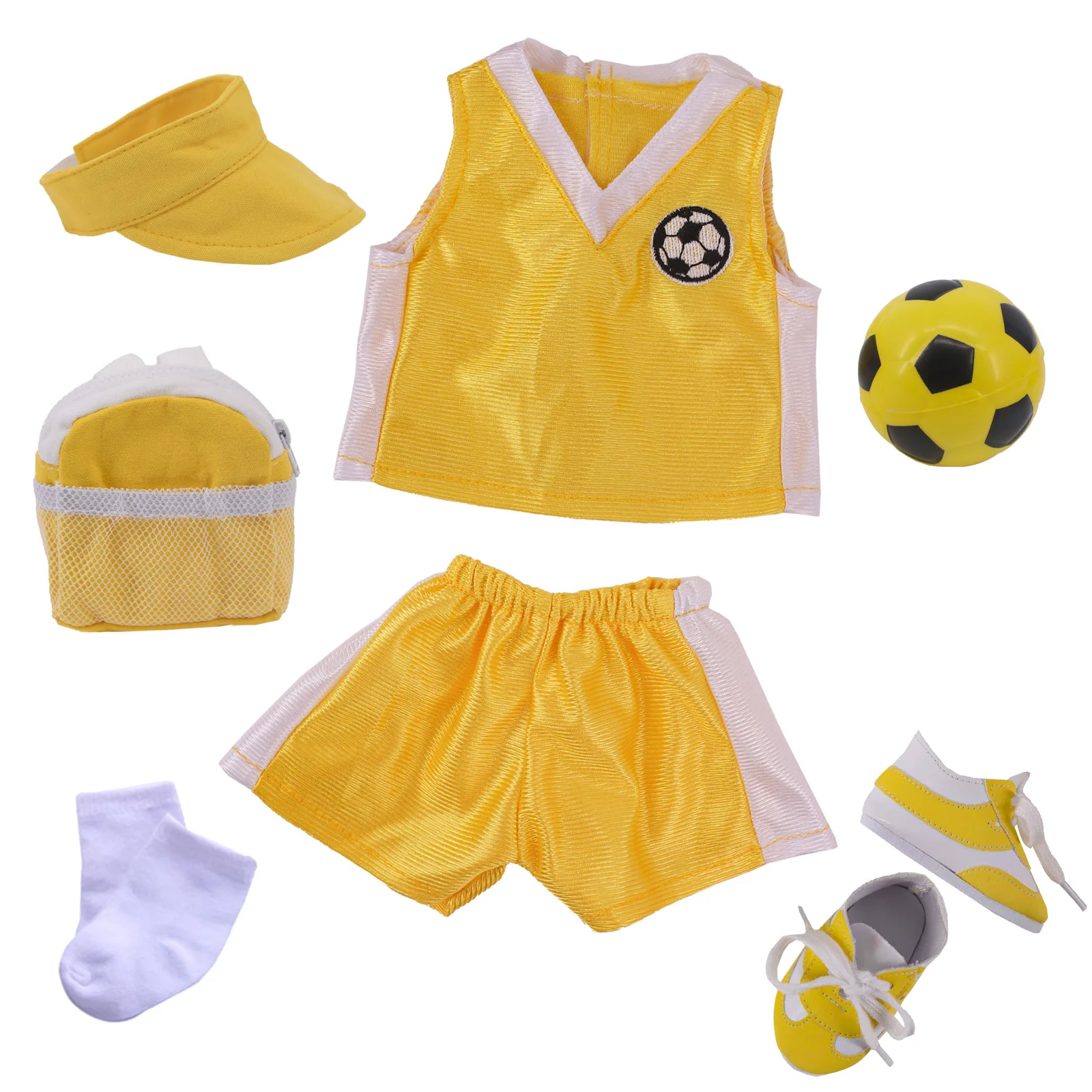И профессиональное производство ткани для футбольной формы, очень подходит в качестве подарка для детей. И Хорошо подходит для воспитания детского интереса к футболу. И Это очень высококачественный костюм одежды для кукол, подходящий для кукол американских девочек 16-18 дюймов и кукол baby born 40-43 см и других кукол похожего размера, нашего поколения, my life doll