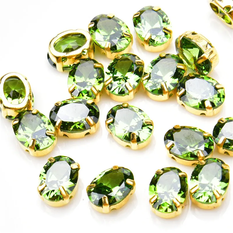 Высококачественный 5А циркониевый Кристалл Olivine 6*8 мм, бриллиантовый классический золотой коготь, пришивной камень, искусственная фурнитура, обувь