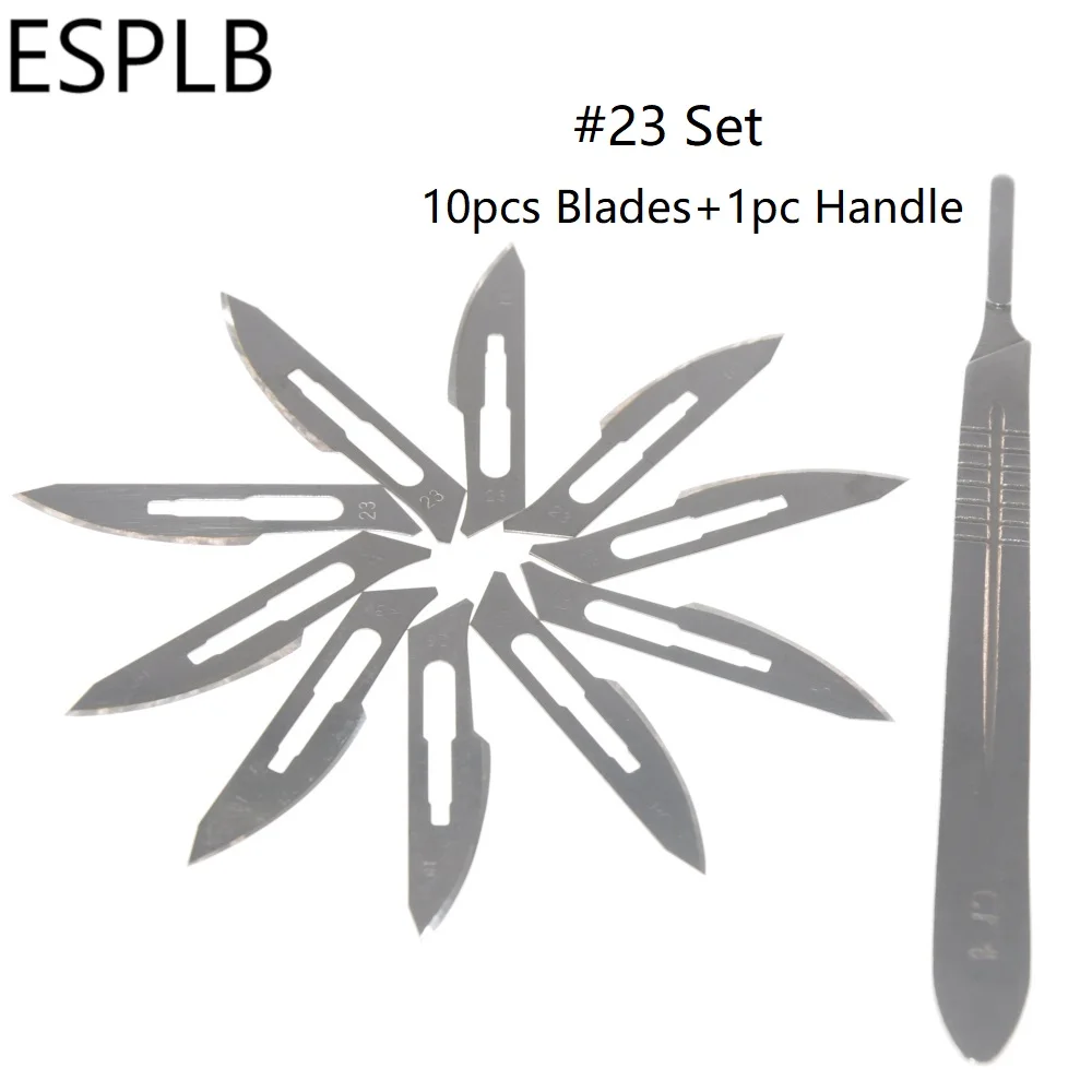 Хирургические лезвия с ручкой из нержавеющей стали для хирургического ремонта животных, 20 шт. #112223