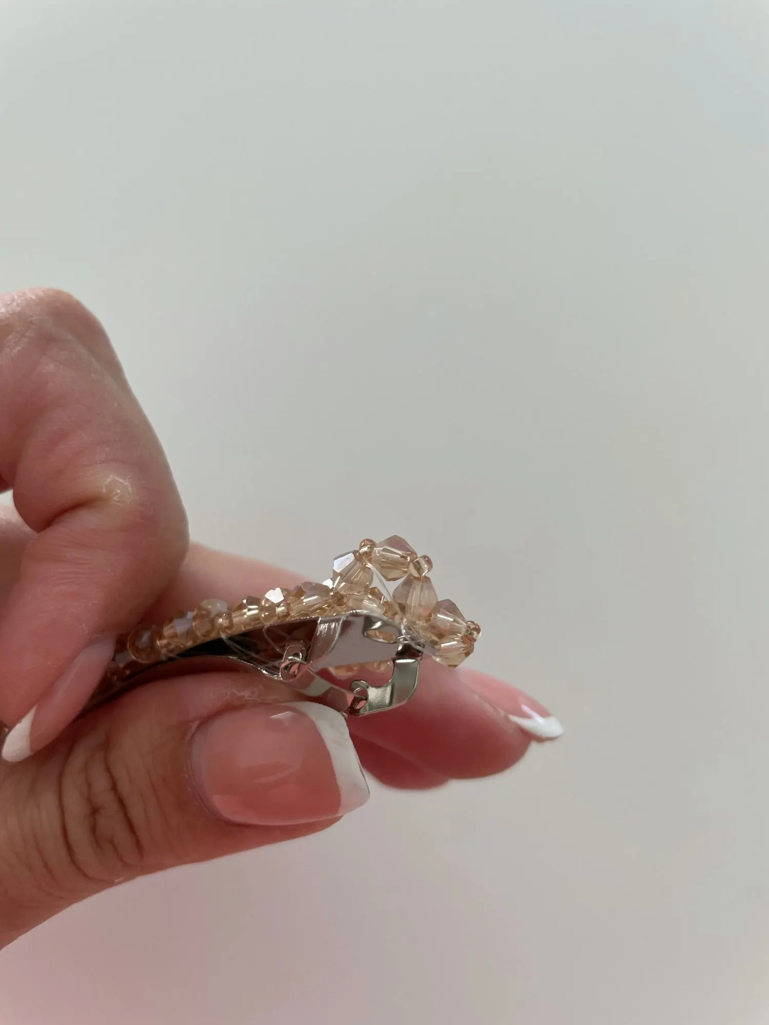 заколка низкого качества....очень тонкое железо и гнется сильно! железо пришло ржавое, а бисер и бусины все в пыли! интересно, где она лежала, в какой помойке? единственный плюс - держит все мои тоненькие волосы. но надолго её точно не хватит(
