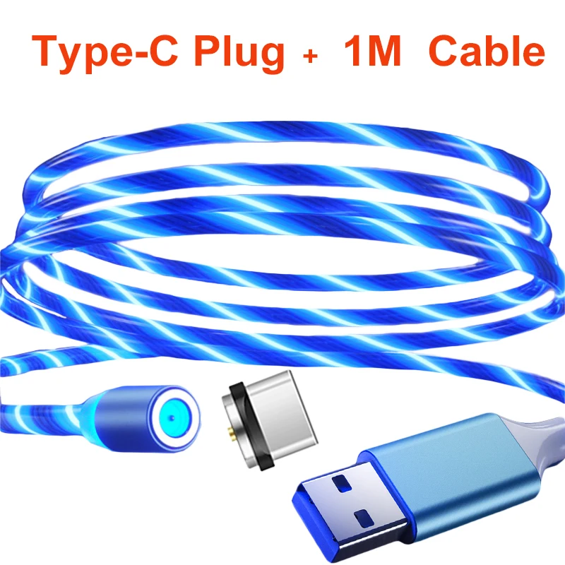 1 м 2 м Магнитный кабель Micro USB Type C светящийся световой шнур ...